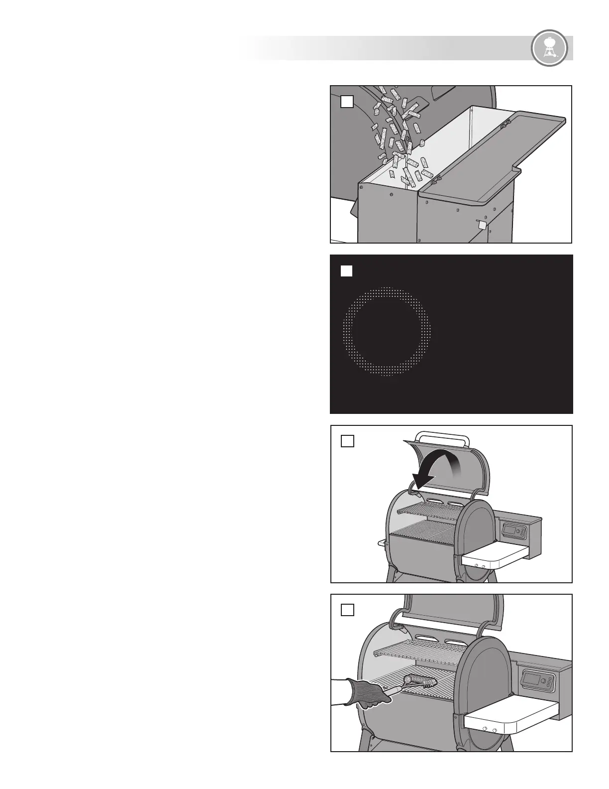 1. Make sure the hopper is filled with your choice of WEBER SMOKEFIRE