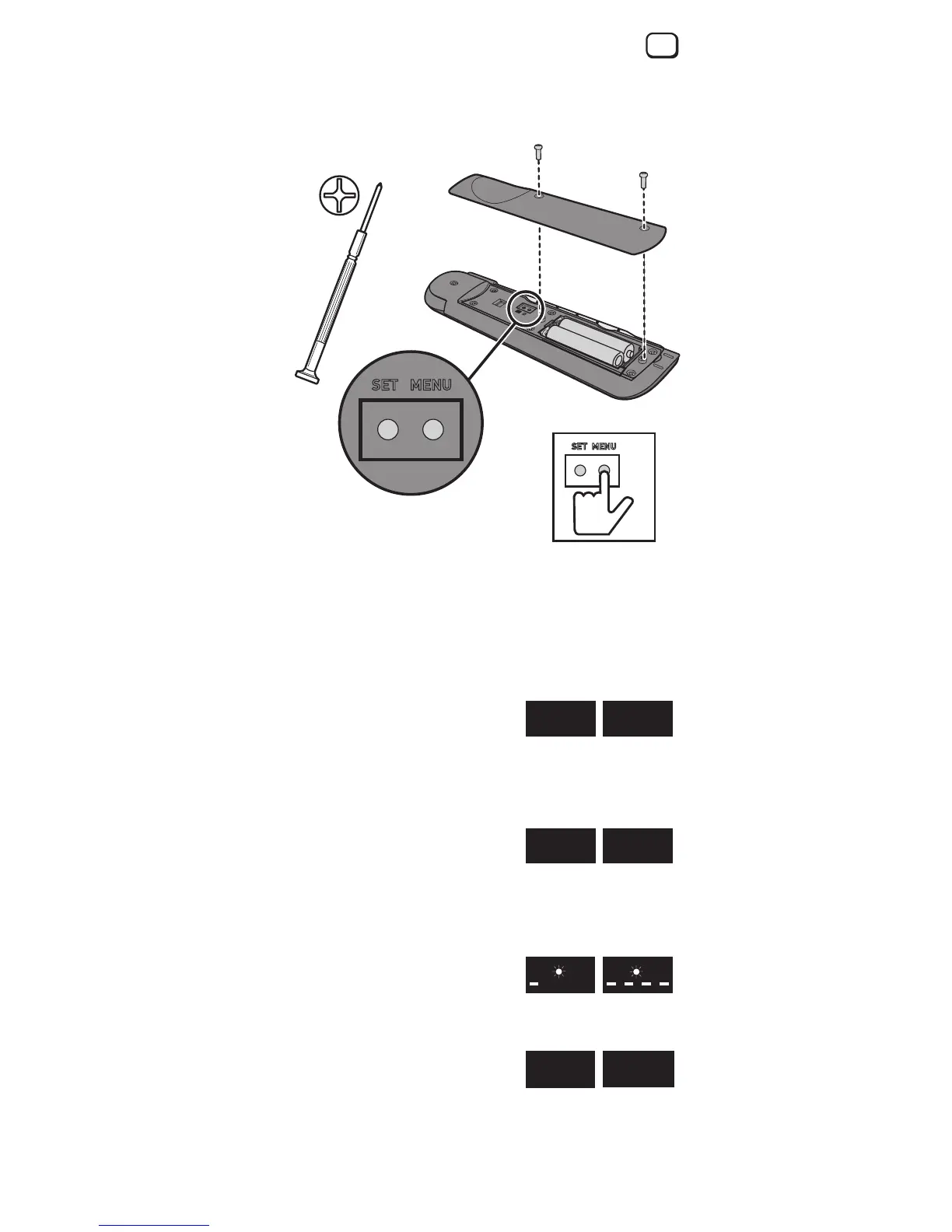 interne knoppen MENU en SET, die zich onder het batterijklepje