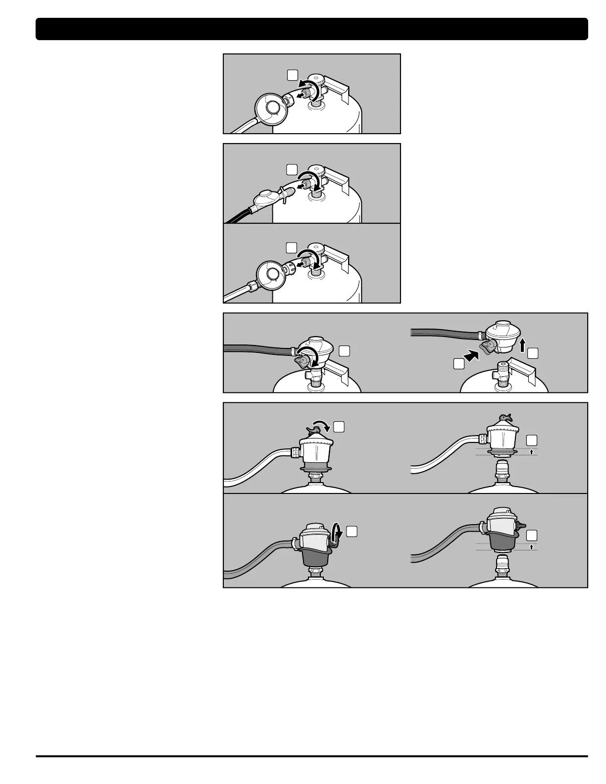 Weber Spirit E-210 - 断开调节器与液化丙烷气罐的连接; 为液化丙烷气罐充气; 重新连接液化丙烷气罐