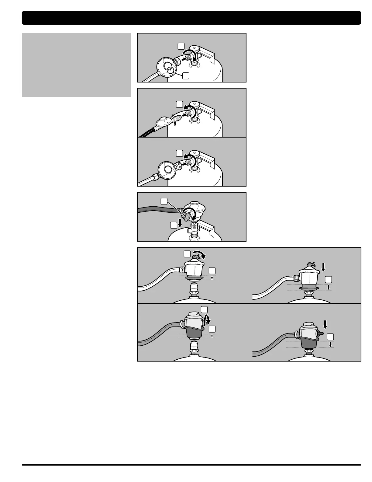 ギュレーターをボンベのバルブに押し込みます (6)。