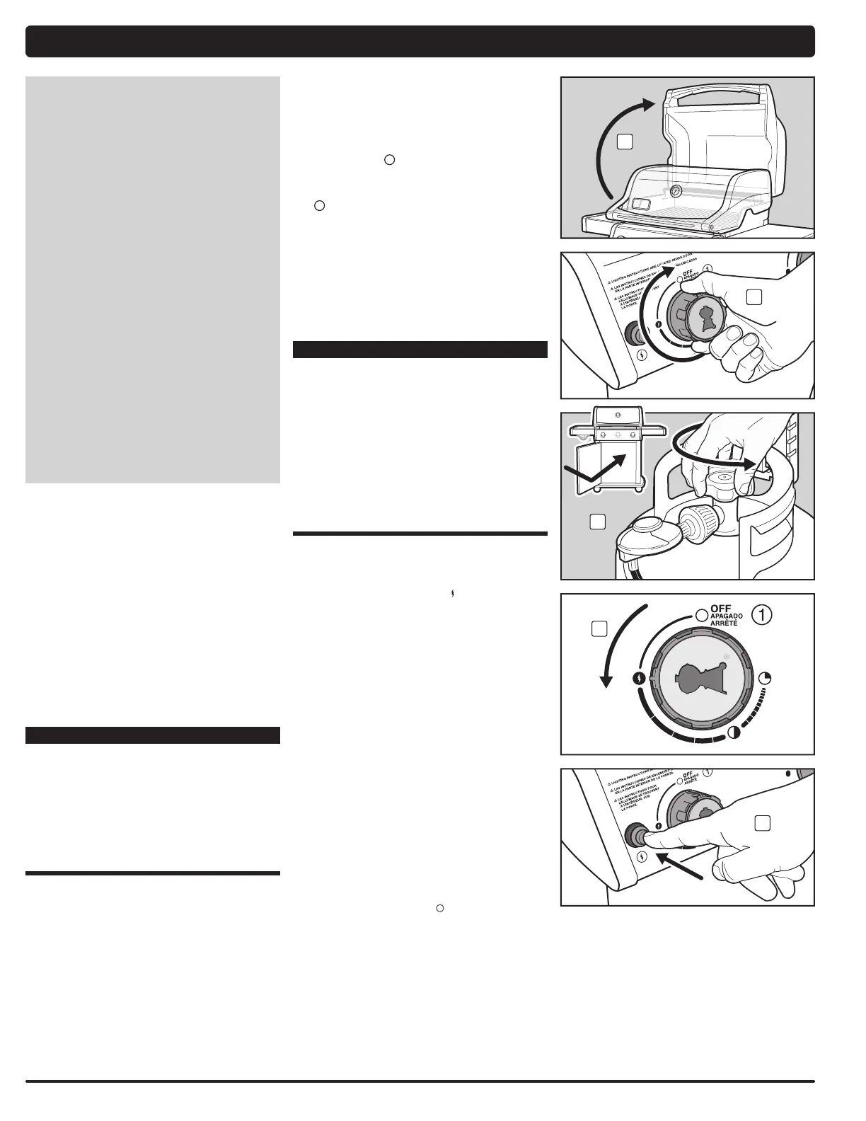 Presione cada perilla de control del quemador y gire