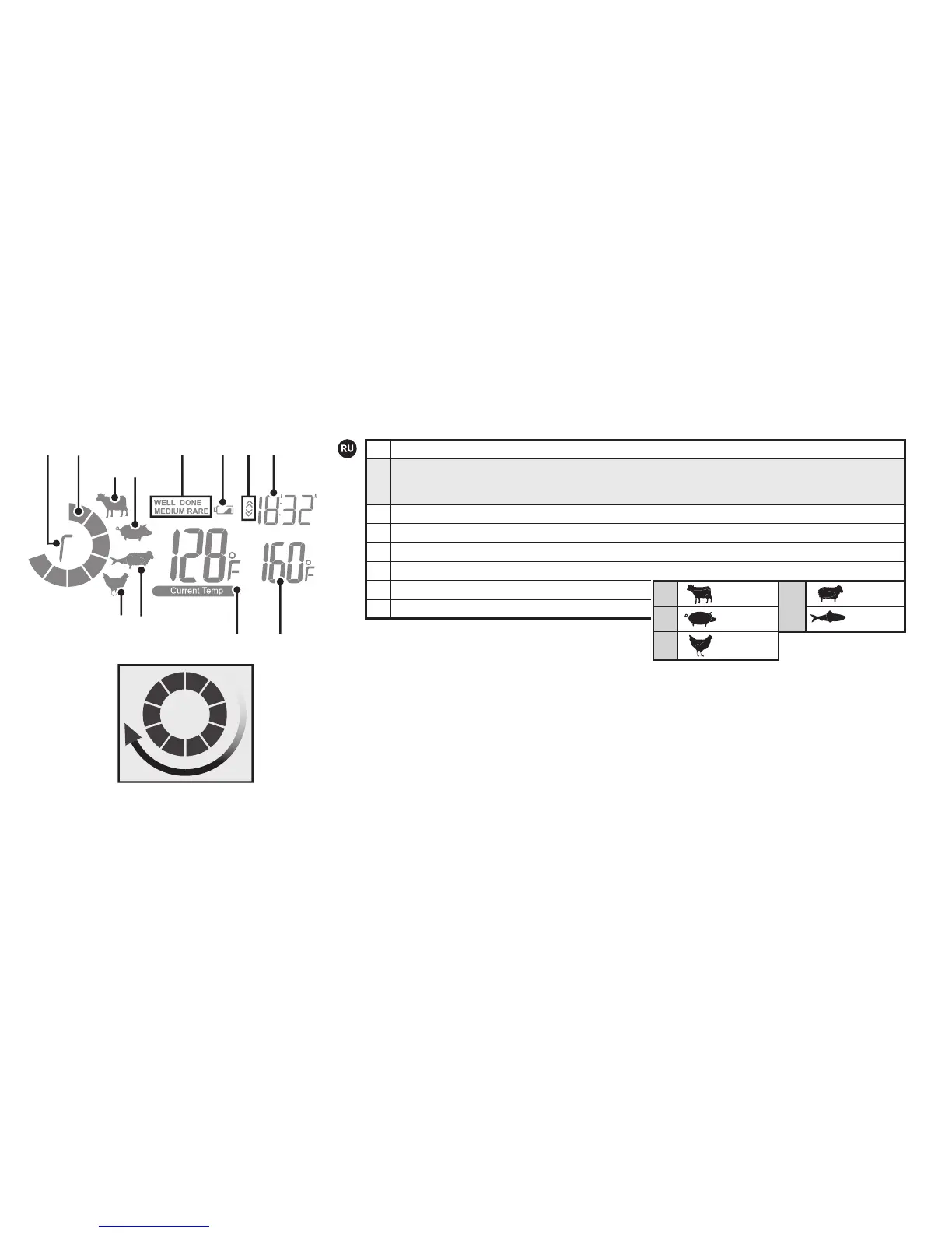 Наглядная шкала появляется при повышении температуры продукта и мигает при достижении