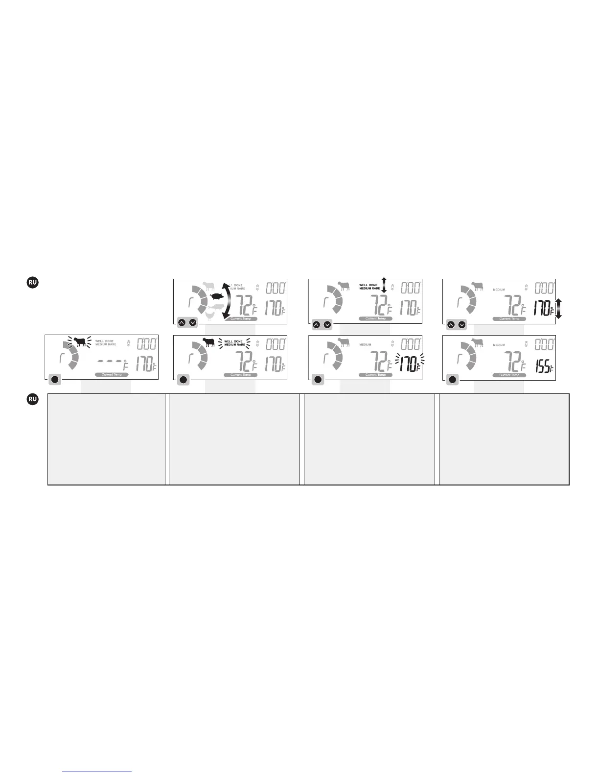 stupně propečení. Teploměr přejde do režimu