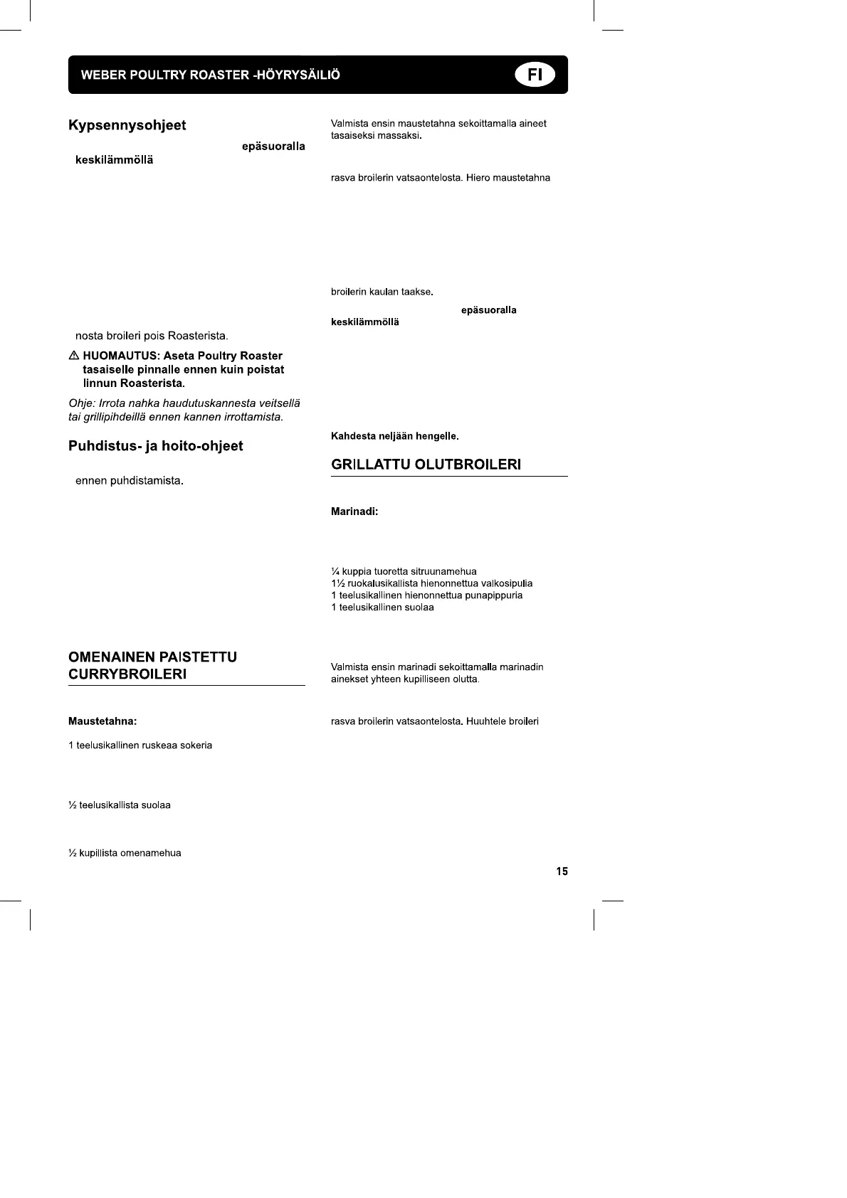 • Varmista, että Poultry Roaster on jäähtynyt
