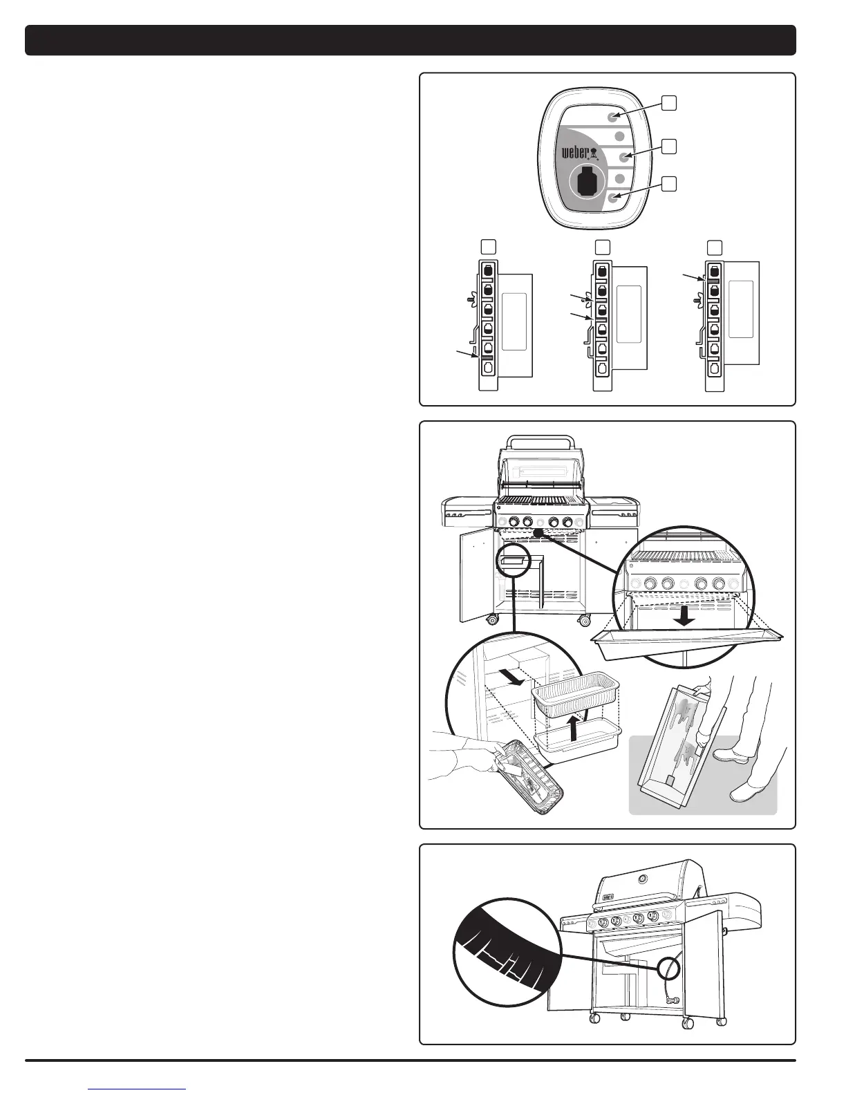 the grease tray and drip pan with a soap and water solution, then rinse with clean water.
