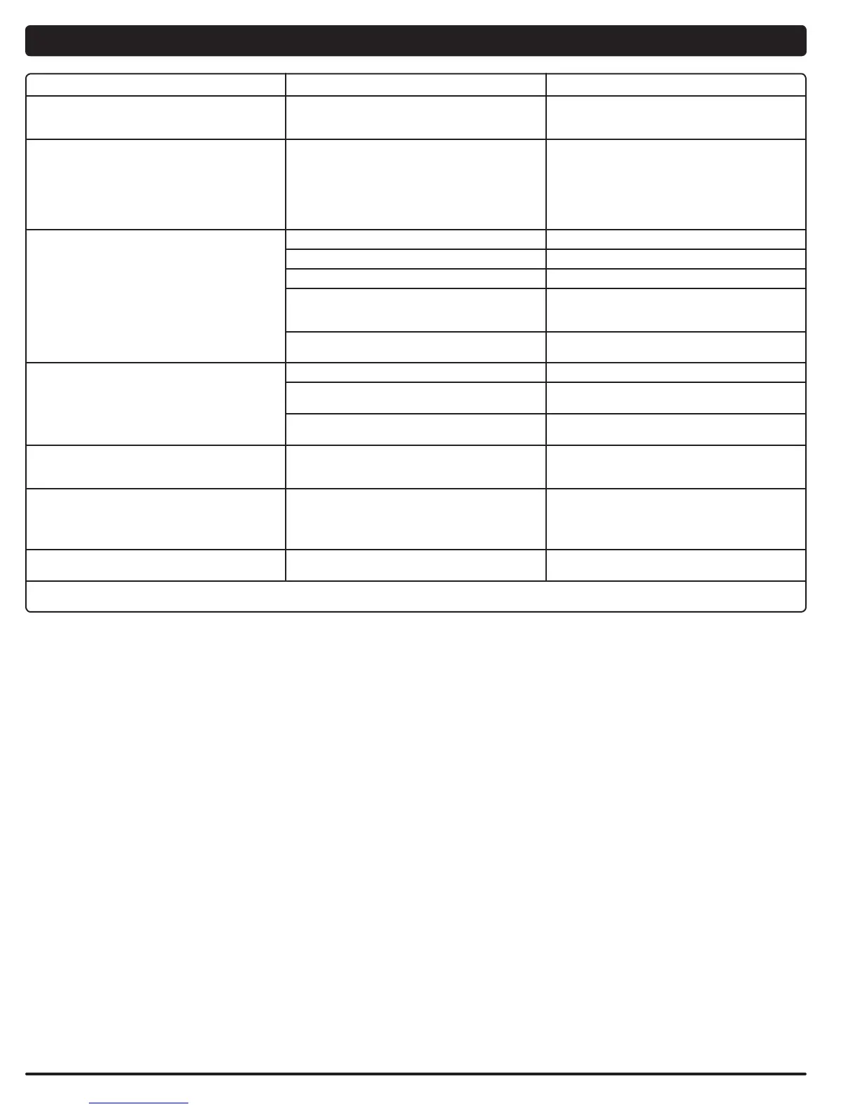 Burner does not light, or flame is low in HI position. Is LP fuel low or empty? Refill LP cylinder.