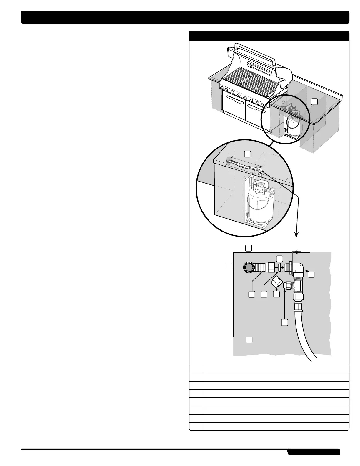 A 58" (147.32 cm) corrugated gas line is connected to the manifold of the grill.