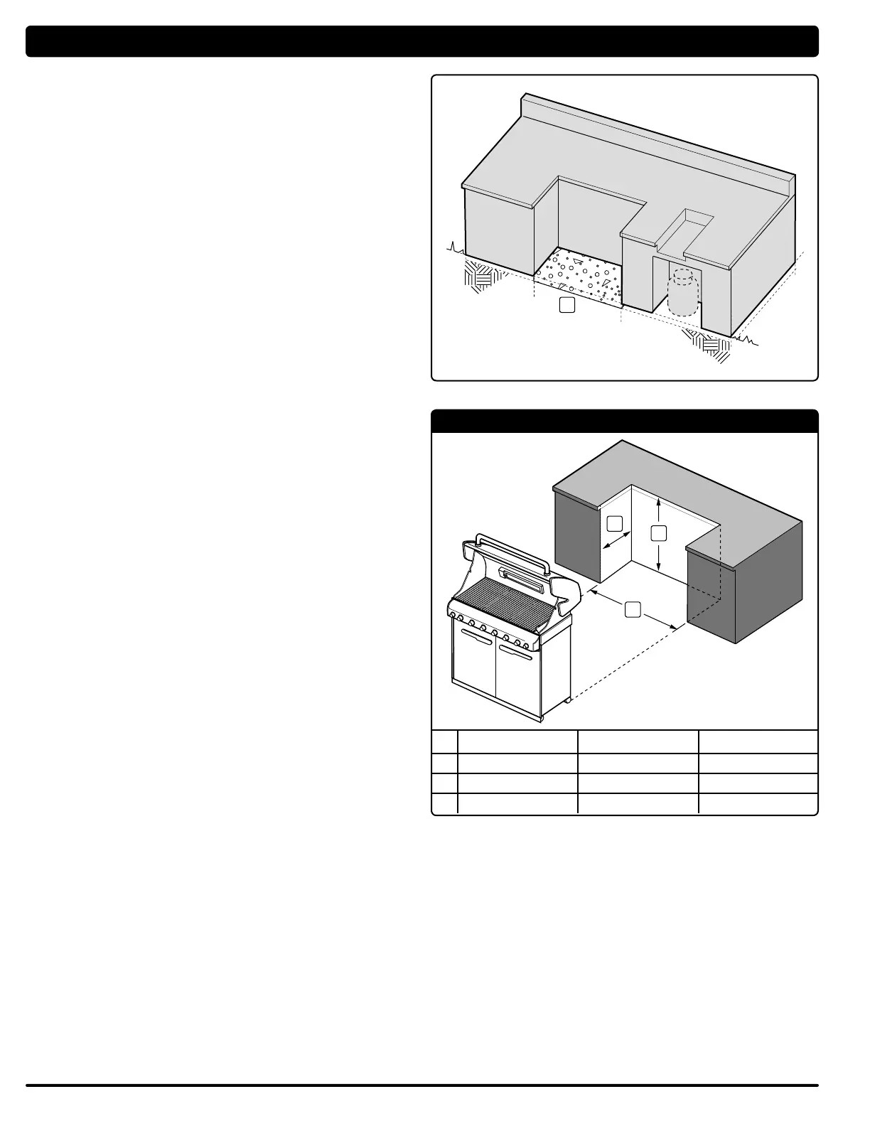 The installation of this grill requires a level floor pad surface (1) and countertop surface.