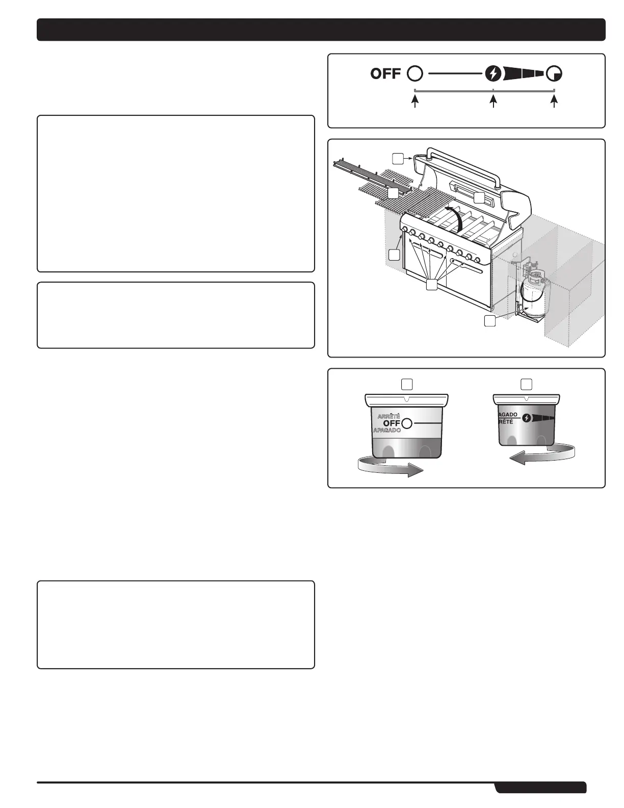 C) Make sure all burner control knobs are turned off (3). (Push control knob in and turn