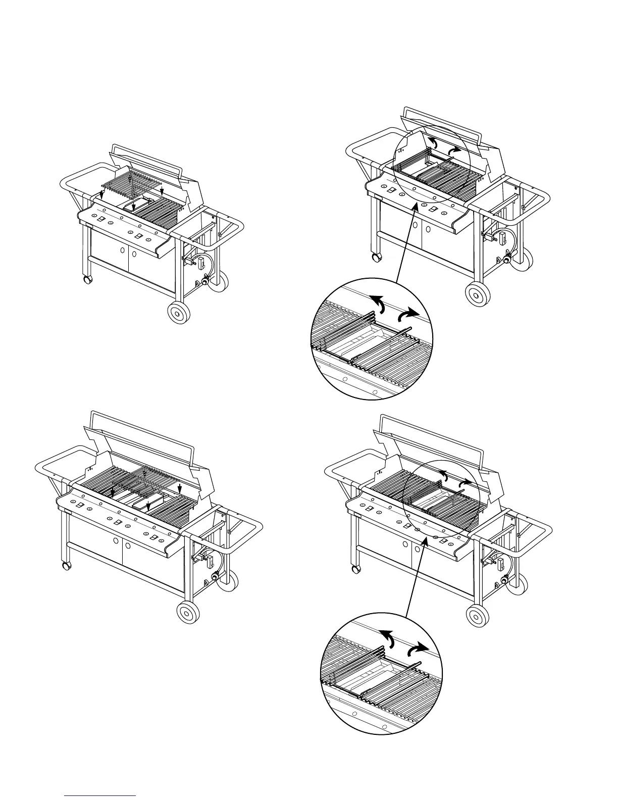 The cross-rail of the cooking grate goes down. Set the