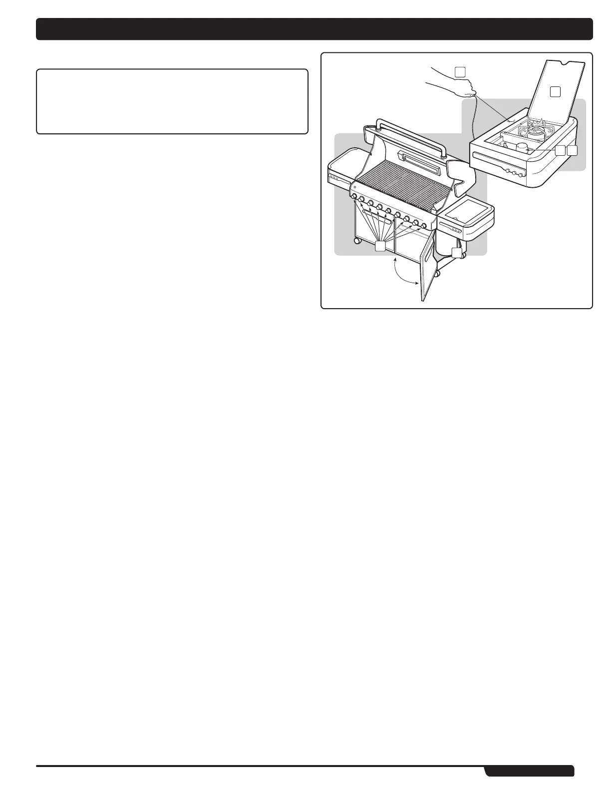 B) Check that the side burner valve is turned off (2) (Push control knob in and turn