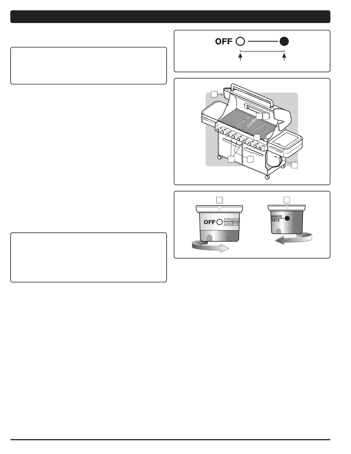B) Make sure all burner control knobs are turned off (2). (Push control knob in and turn