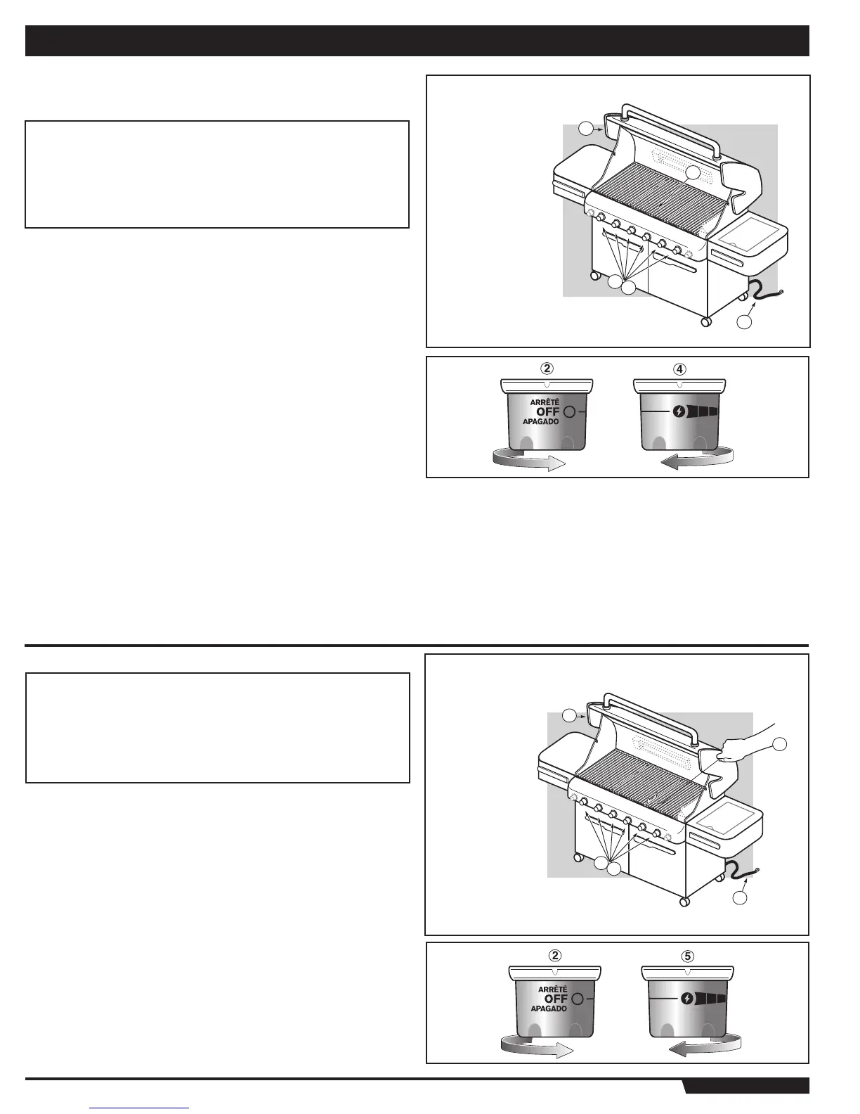 2) Asegúrese de que todas las perillas de control del quemador estén en la posición