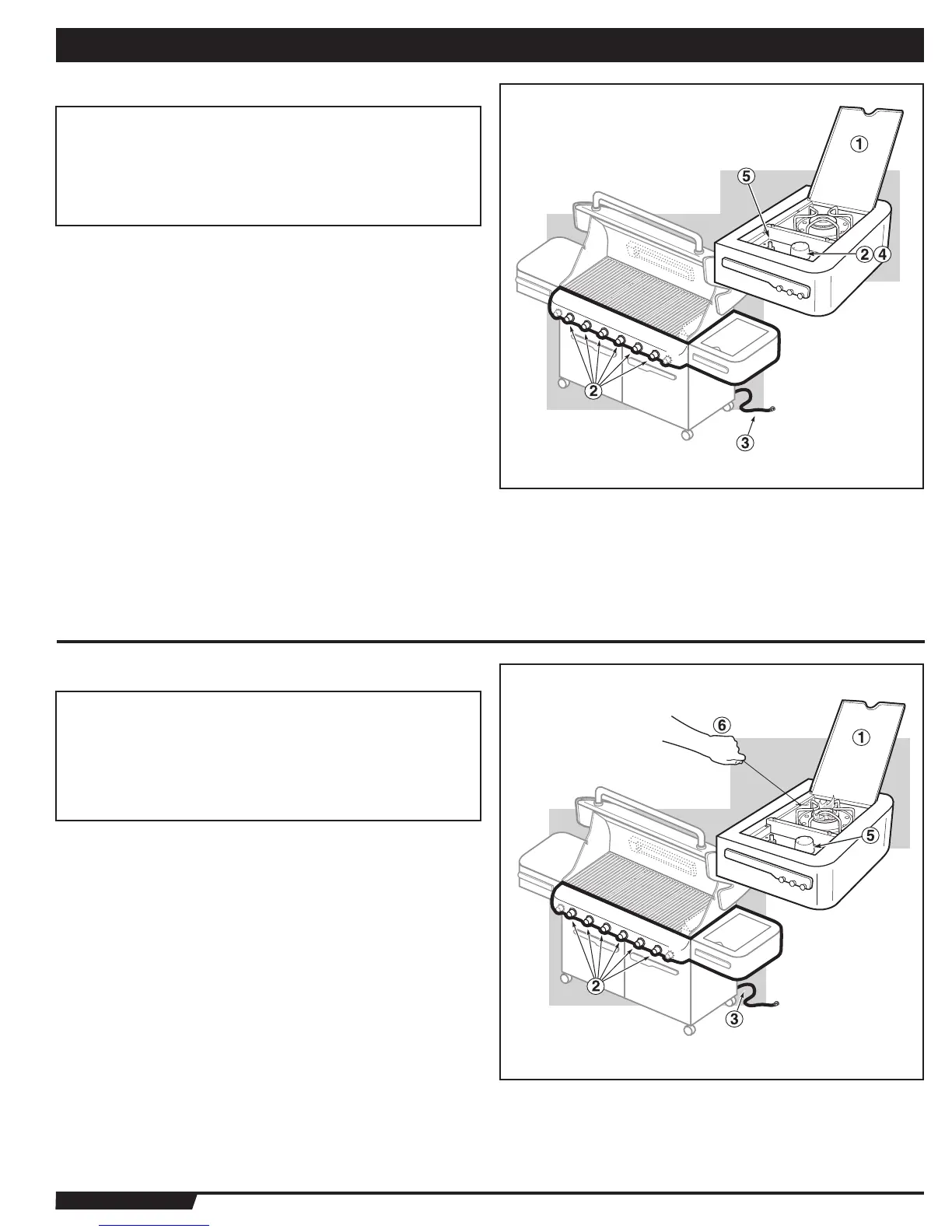 6) Presione y gire la válvula de control del quemador lateral a la posición “HI” (fuego