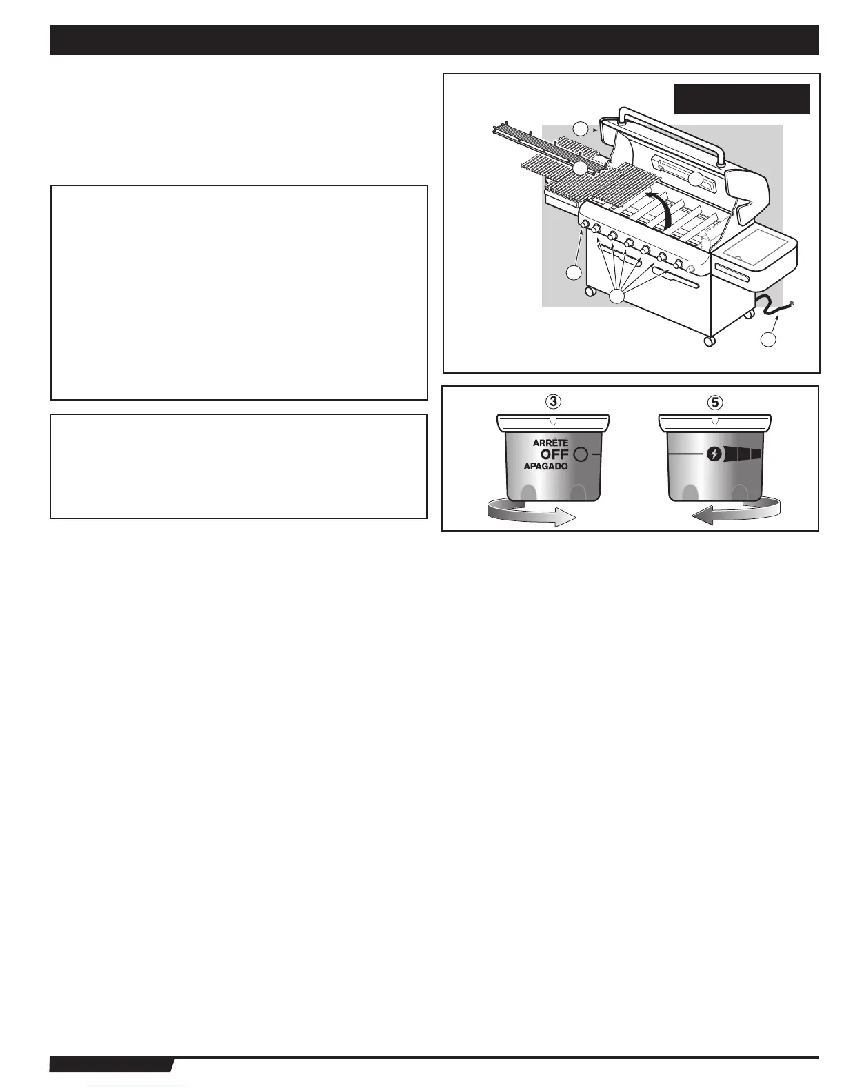 5) Presione la perilla de control del quemador y gírela hacia “START/HI”. Esta acción