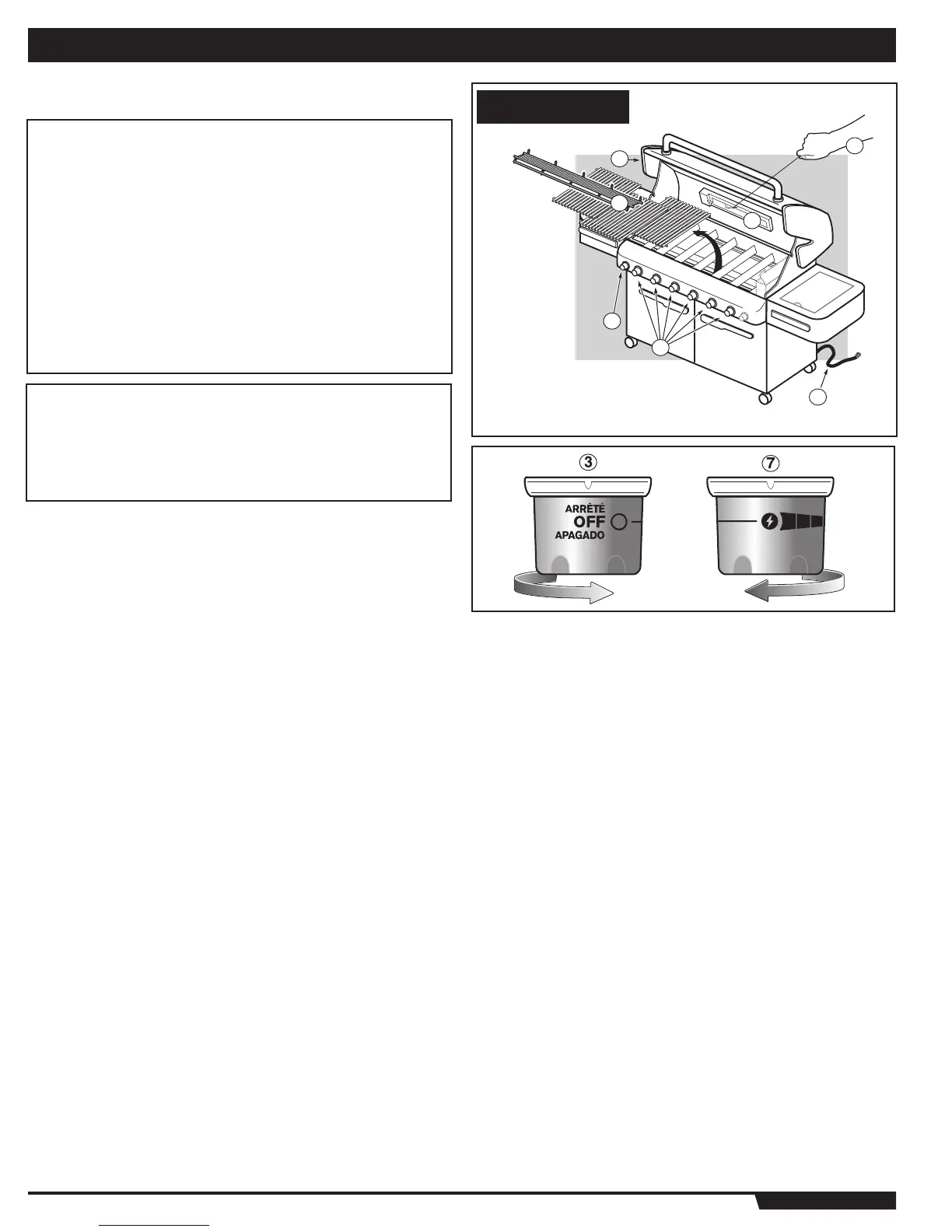 7) Presione la perilla de control del quemador del asador giratorio y gírela hacia