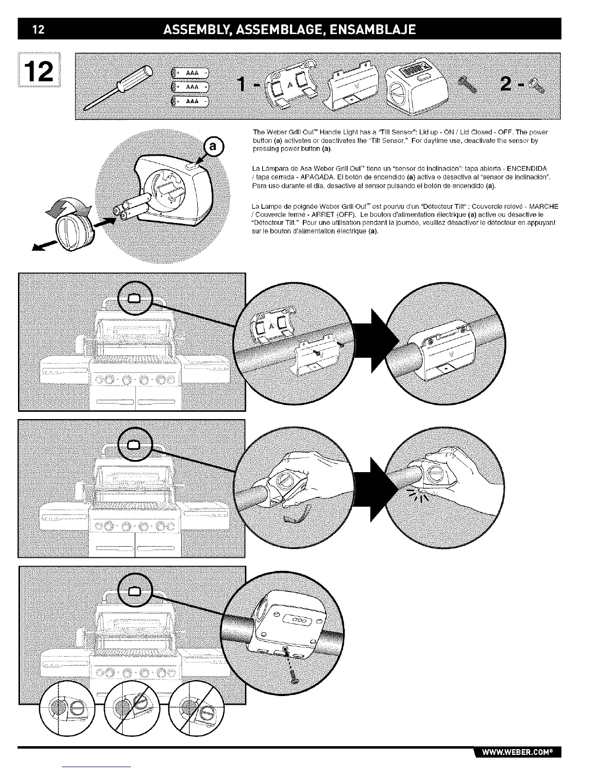 La Lampe de poign_e Weber Grill Out TM est pourvu d'un "Detecteur Tilt" : Couvercle releve - MARCHE