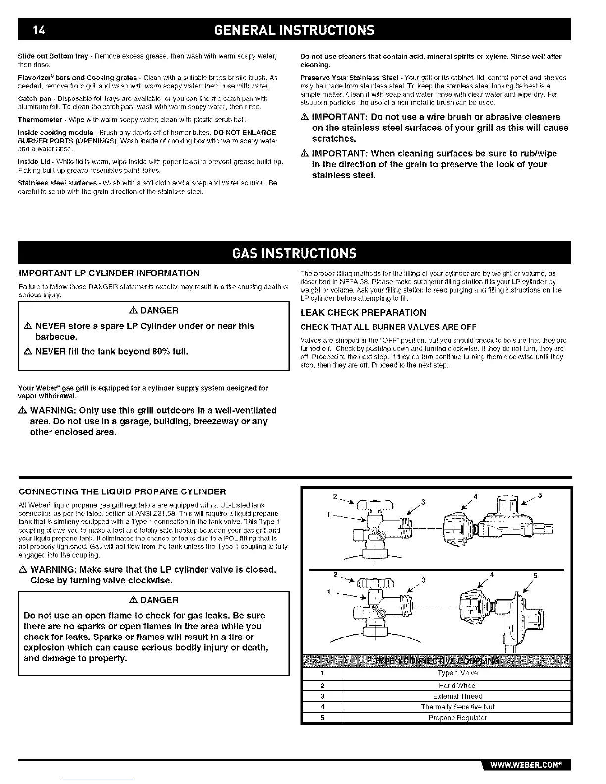 Your Webere gas grill is equipped for a cylinder supply system designed for