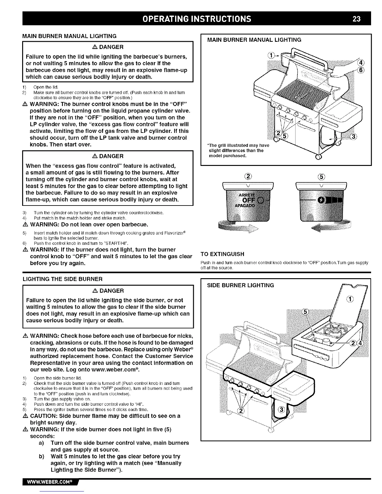 2) Checkthatthe side burner valve is turned off (Push control knob in and turn