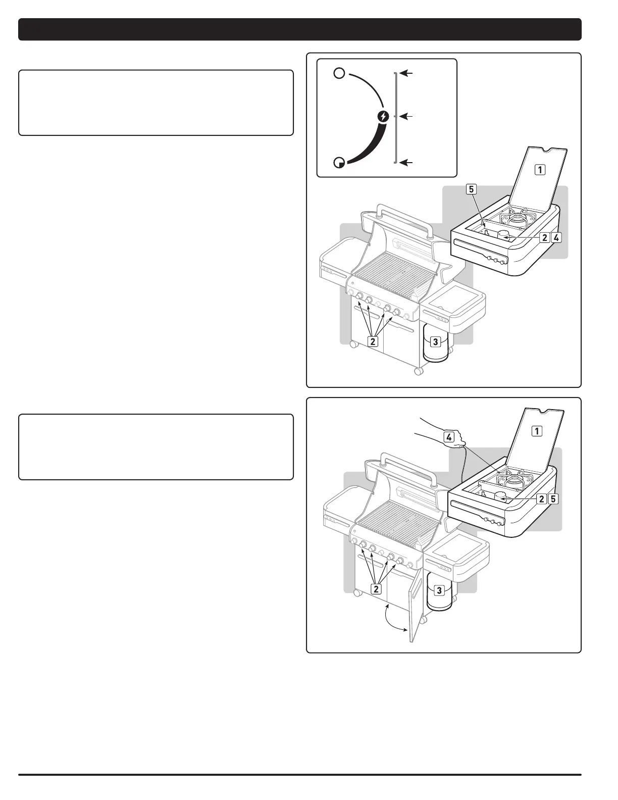 B) Check that the side burner valve is turned o (2) (Push control knob in and turn