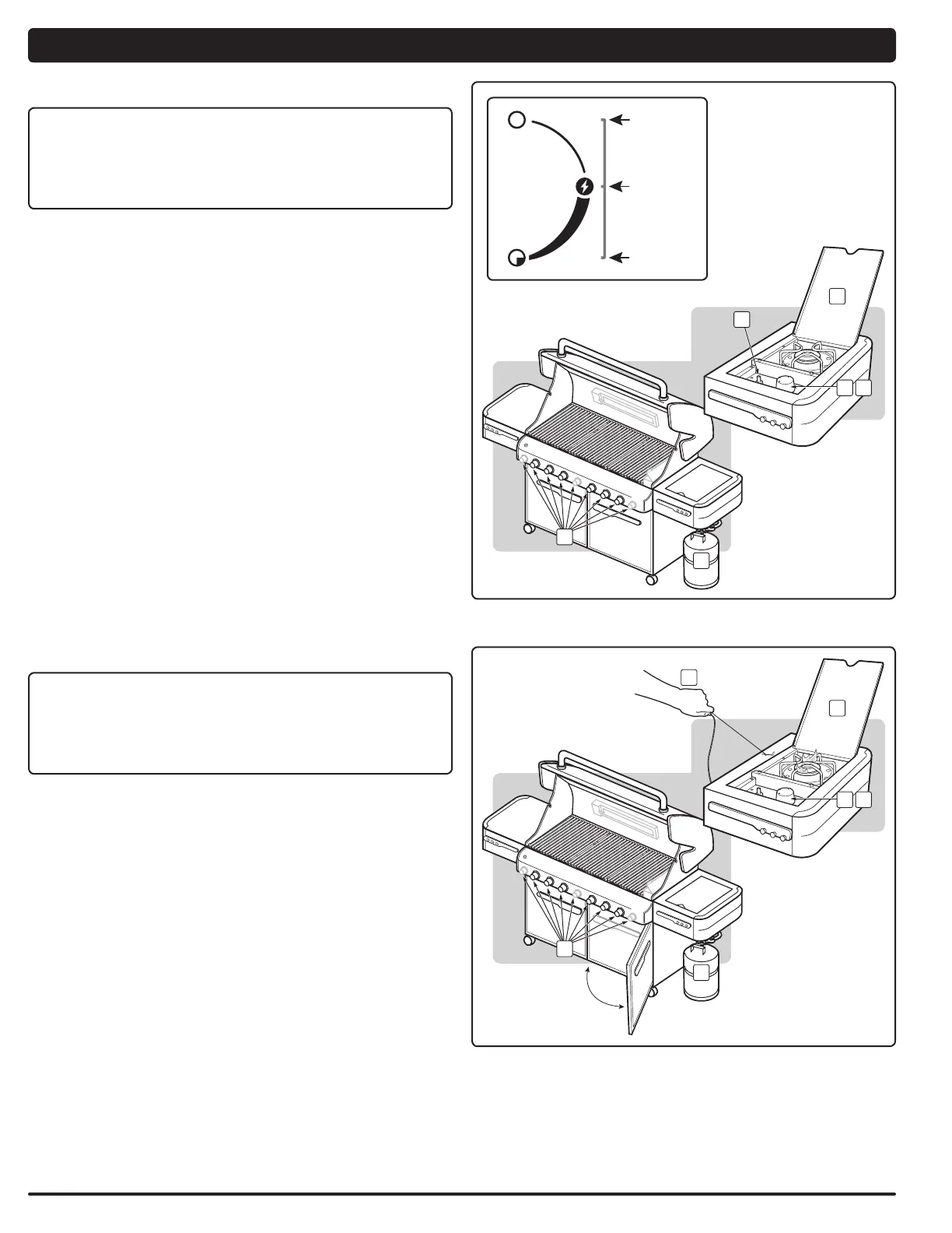 B) Check that the side burner valve is turned o (2) (Push control knob in and turn