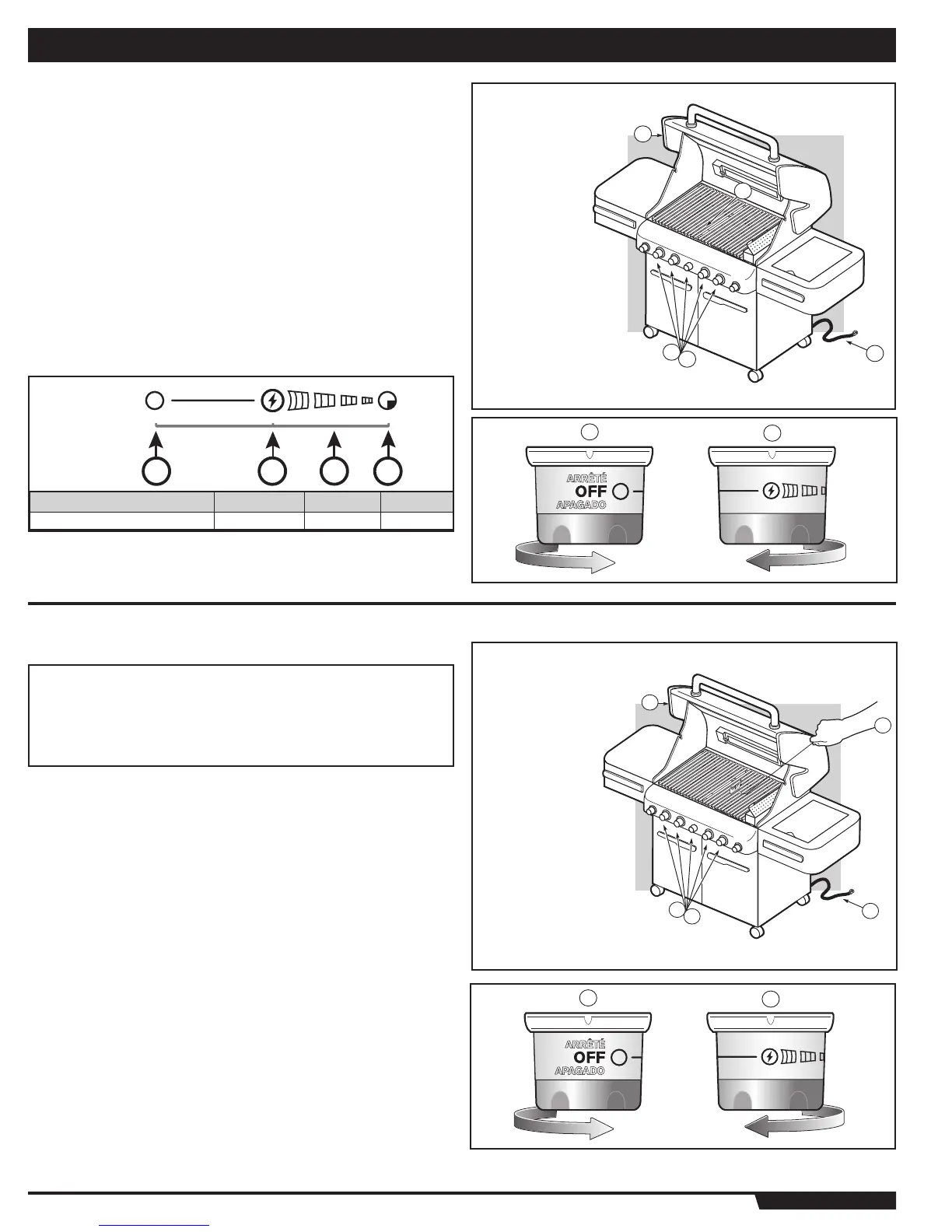 2) Make sure all burner control knobs are turned to “OFF”. (Push each knob in and