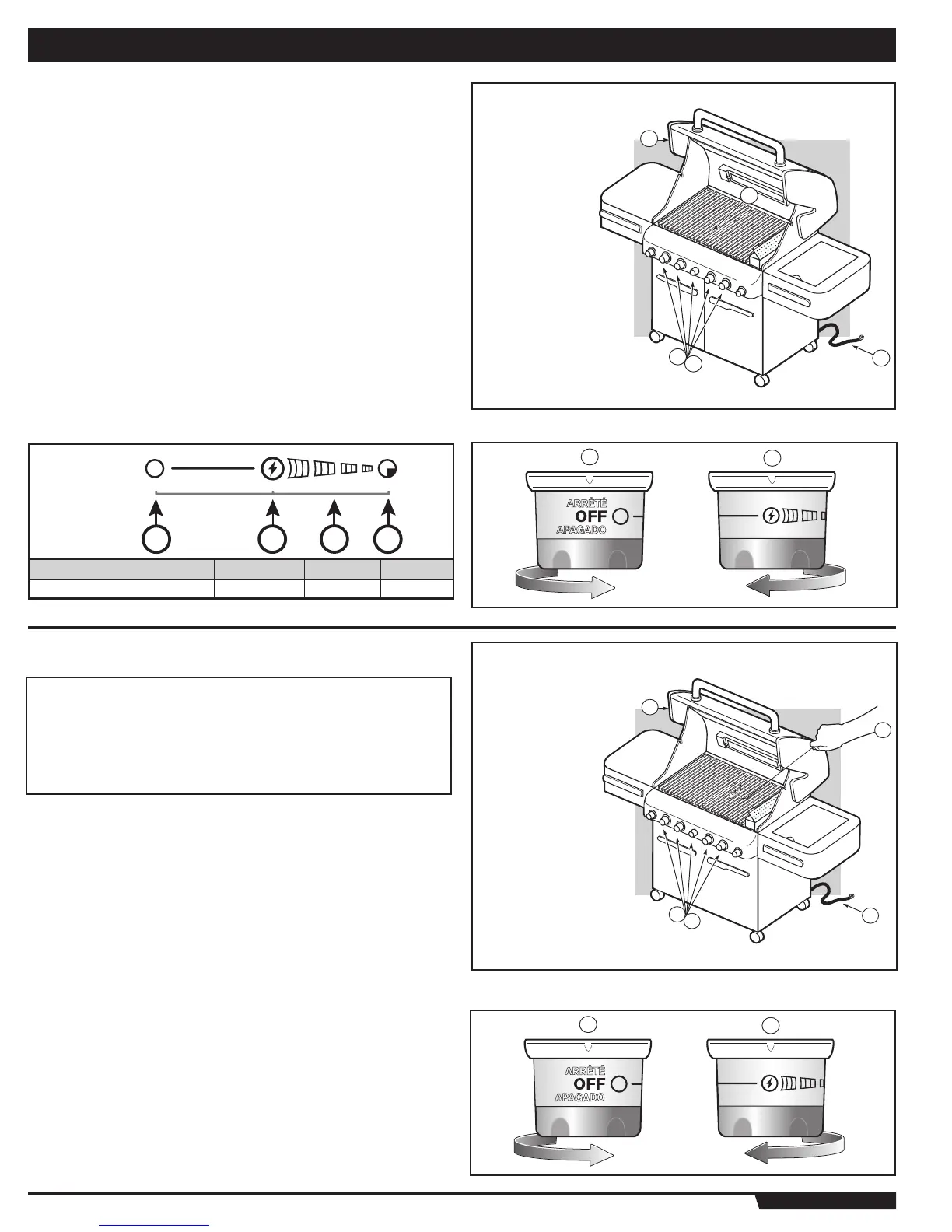 Enfoncez et tournez chaque bouton de commande du brûleur dans le sens des aiguilles