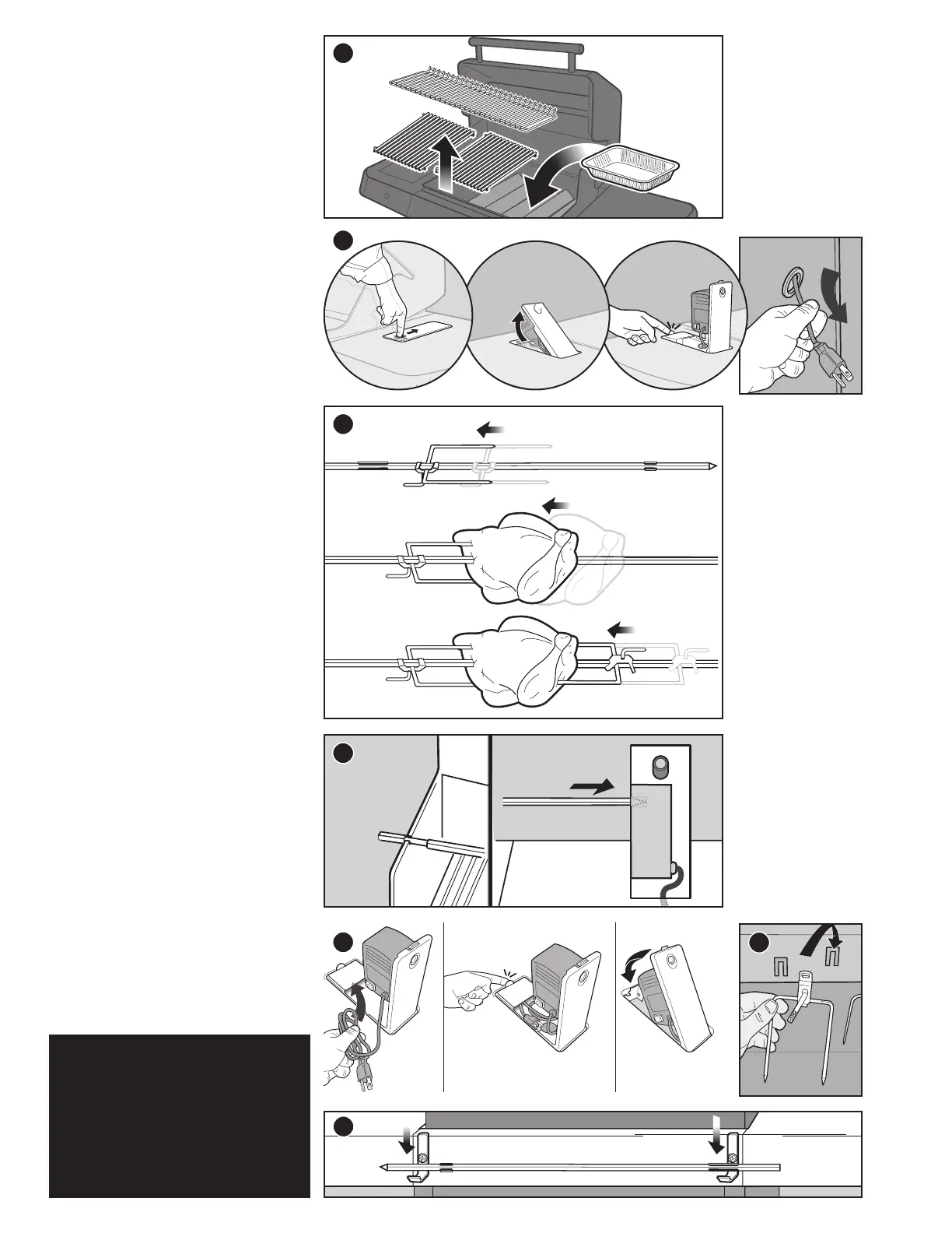 into the rotisserie shaft (C). Push the rotisserie shaft
