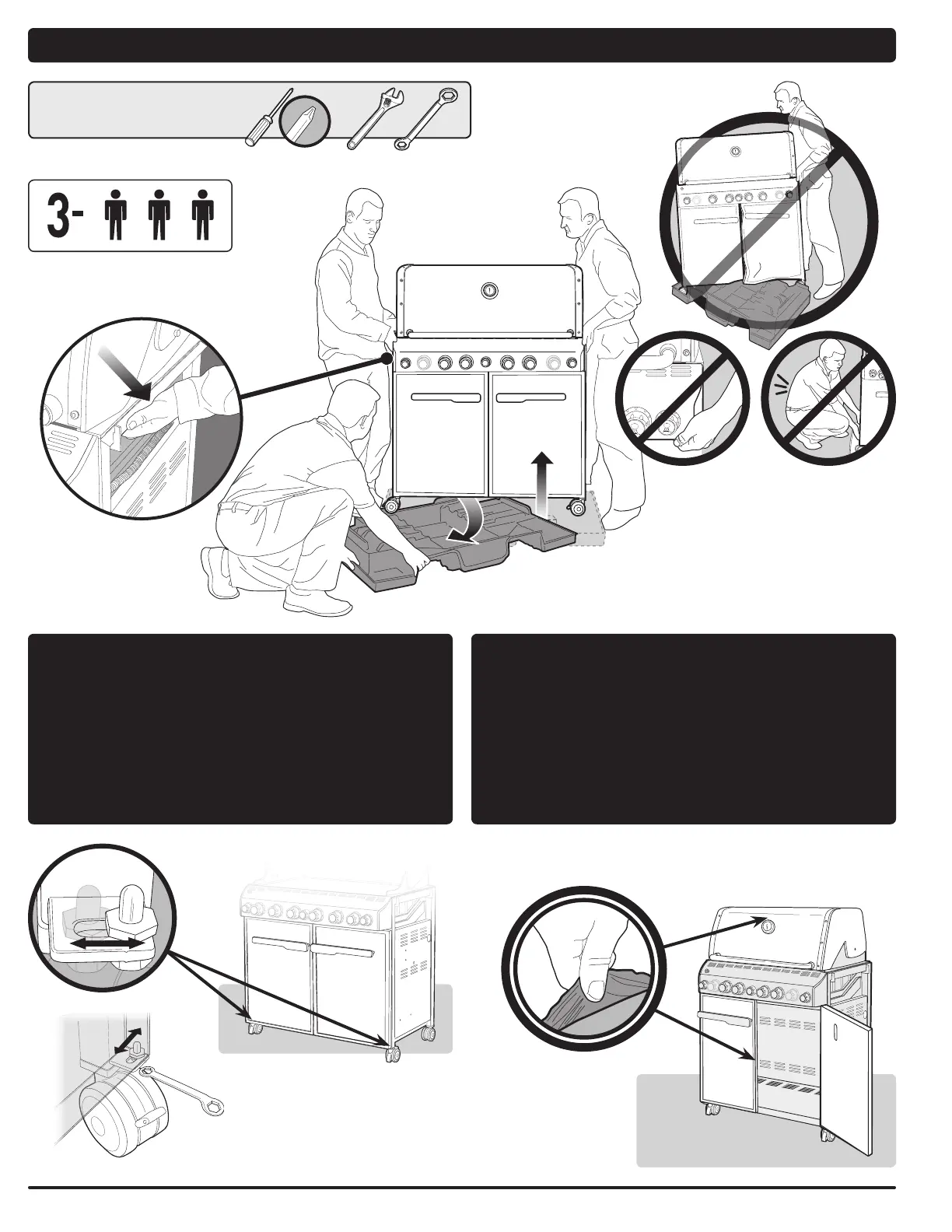 ASSEMBLE GRILL ON A FLAT AND LEVEL SURFACE.