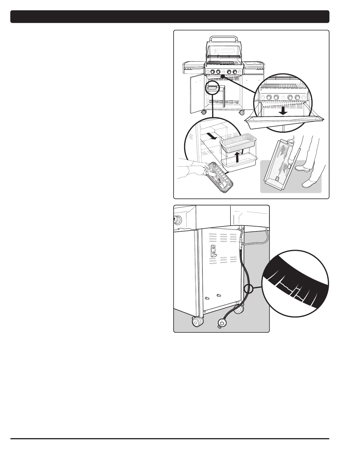 m CAUTION: Do not line the slide-out grease tray with aluminum