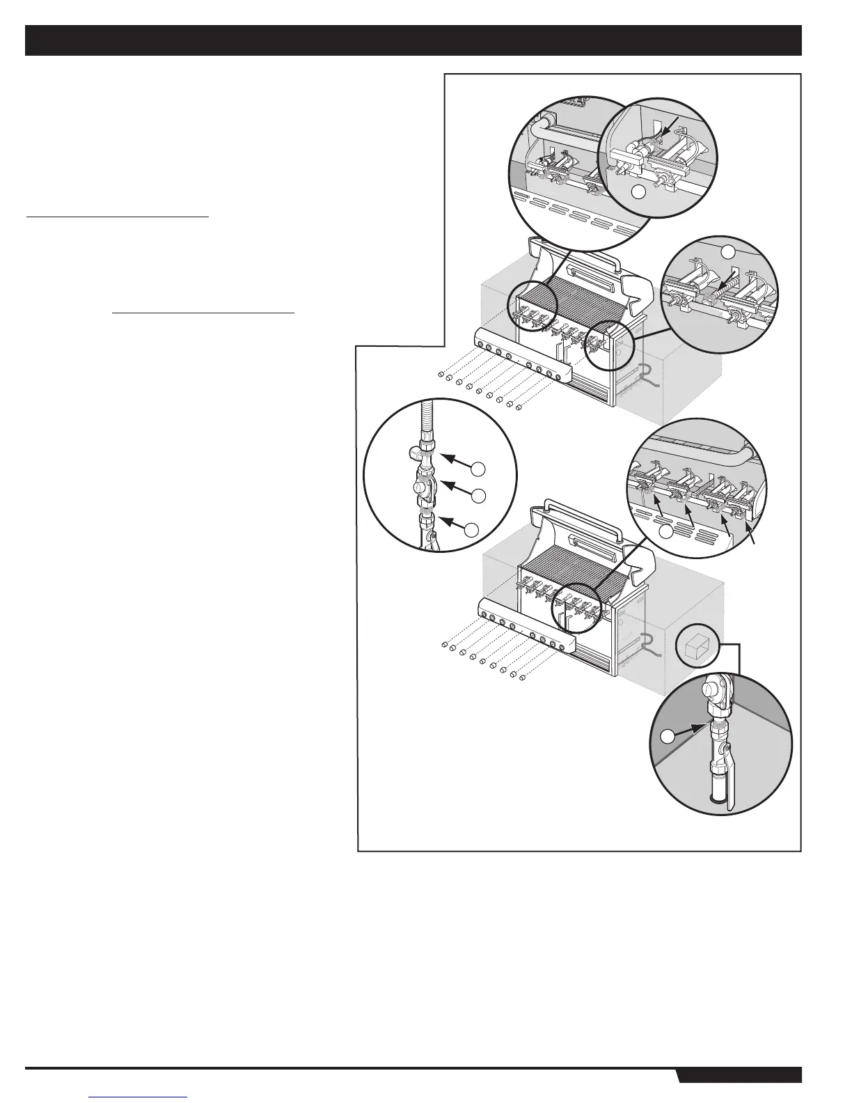2) Rotisserie (I.R. Burner) gas line connection.