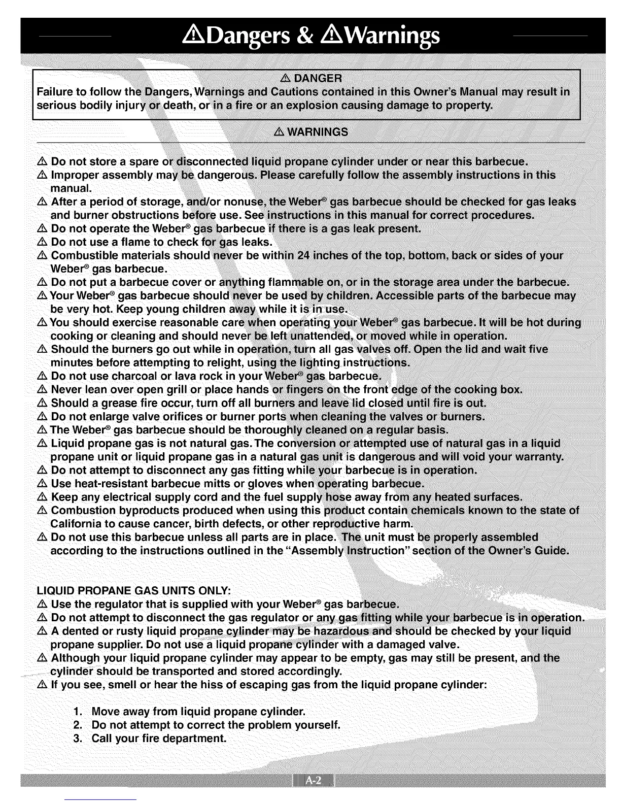A_ Do not operate the Weber ®€