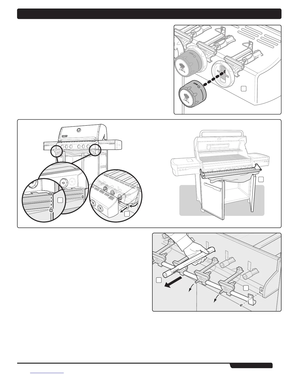 D) Tilt the conrol panel forward and lift up and away from the grill (3) (For Summit