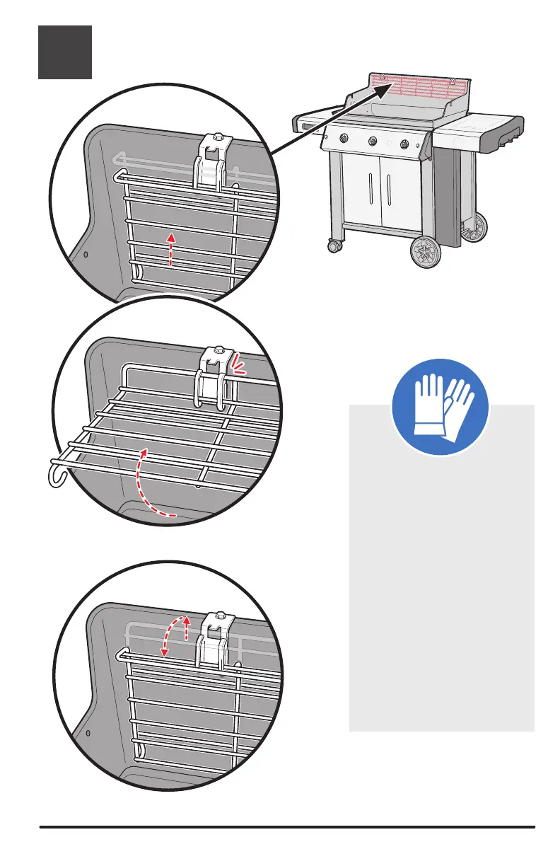 Weber SX-335 - Warming Rack Operation; Raising and Lowering Warming Rack