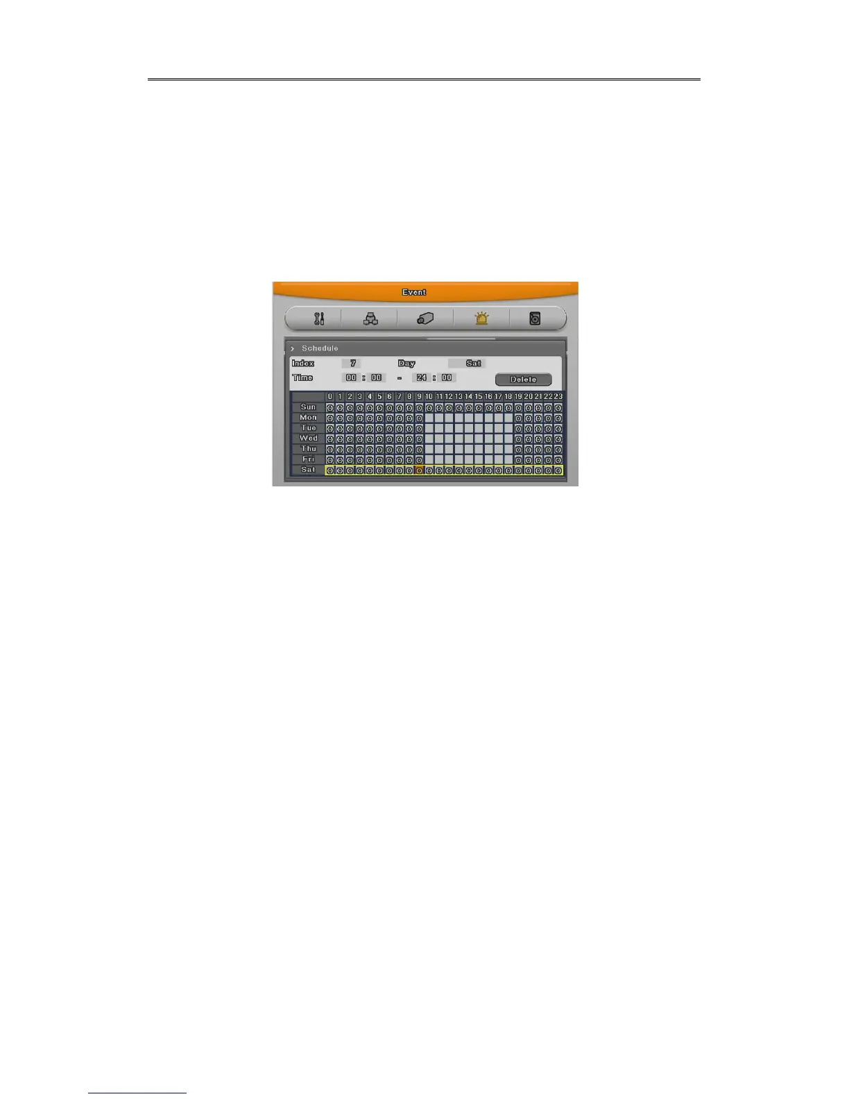 Configure time for event recording and there are 3 mode – Always, no use, Timezone.