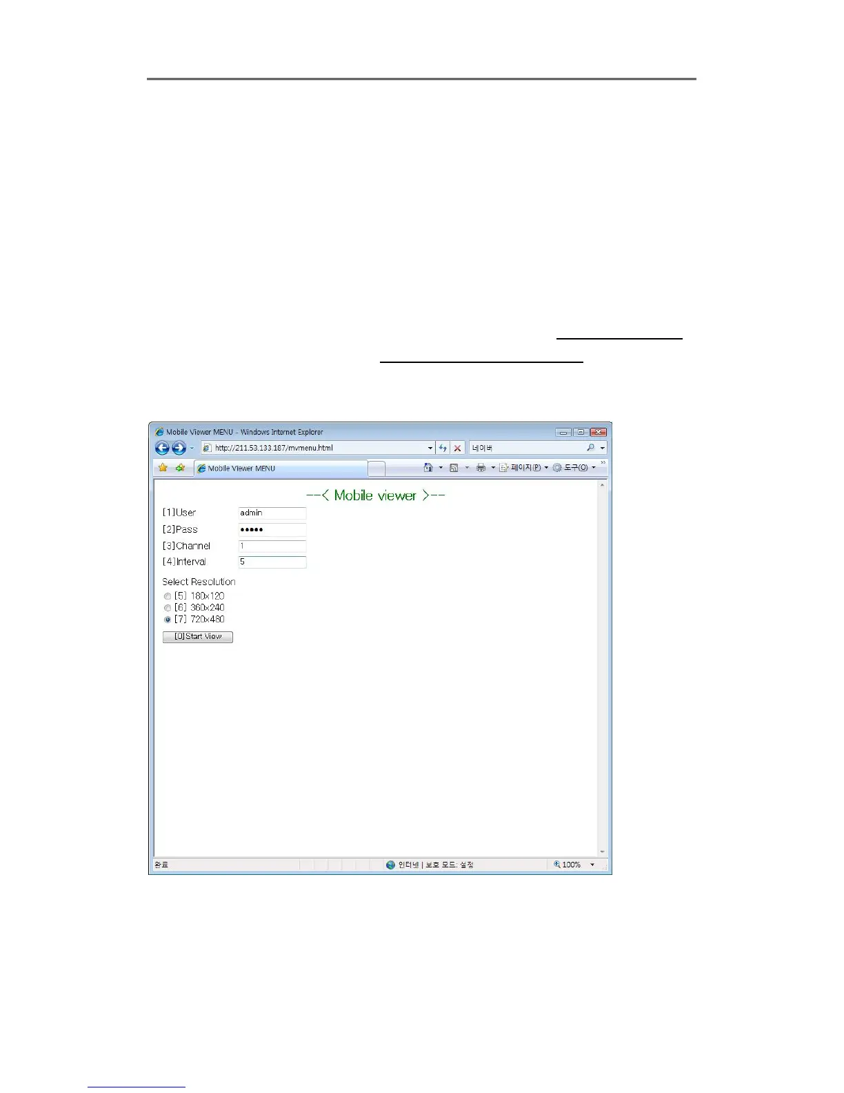 To do log-in, please, enter ID/PW and select Resolution and channel number and cycle and