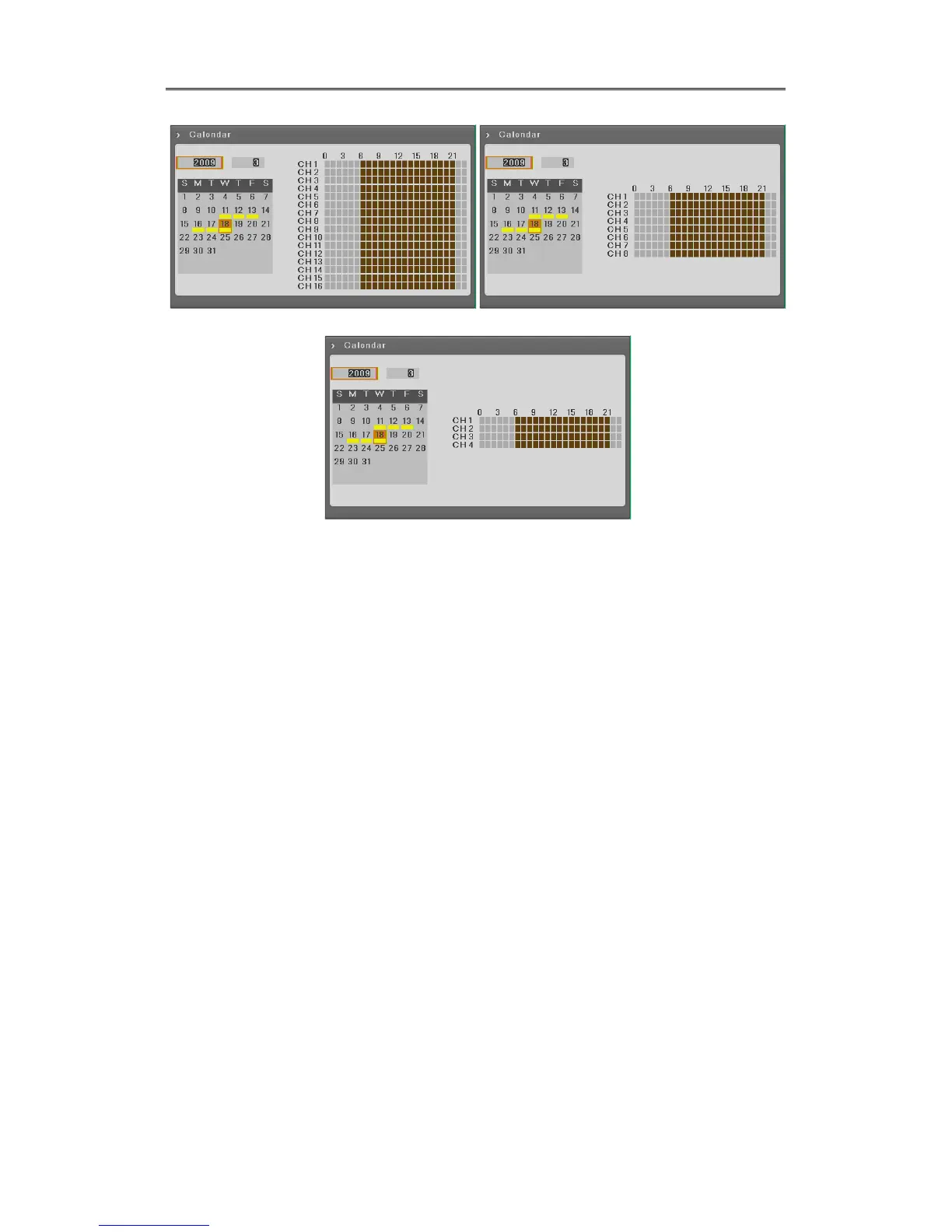 Depends on models, EH1600L, LH1600C shows the status of recording for 1~16ch, EH800M,