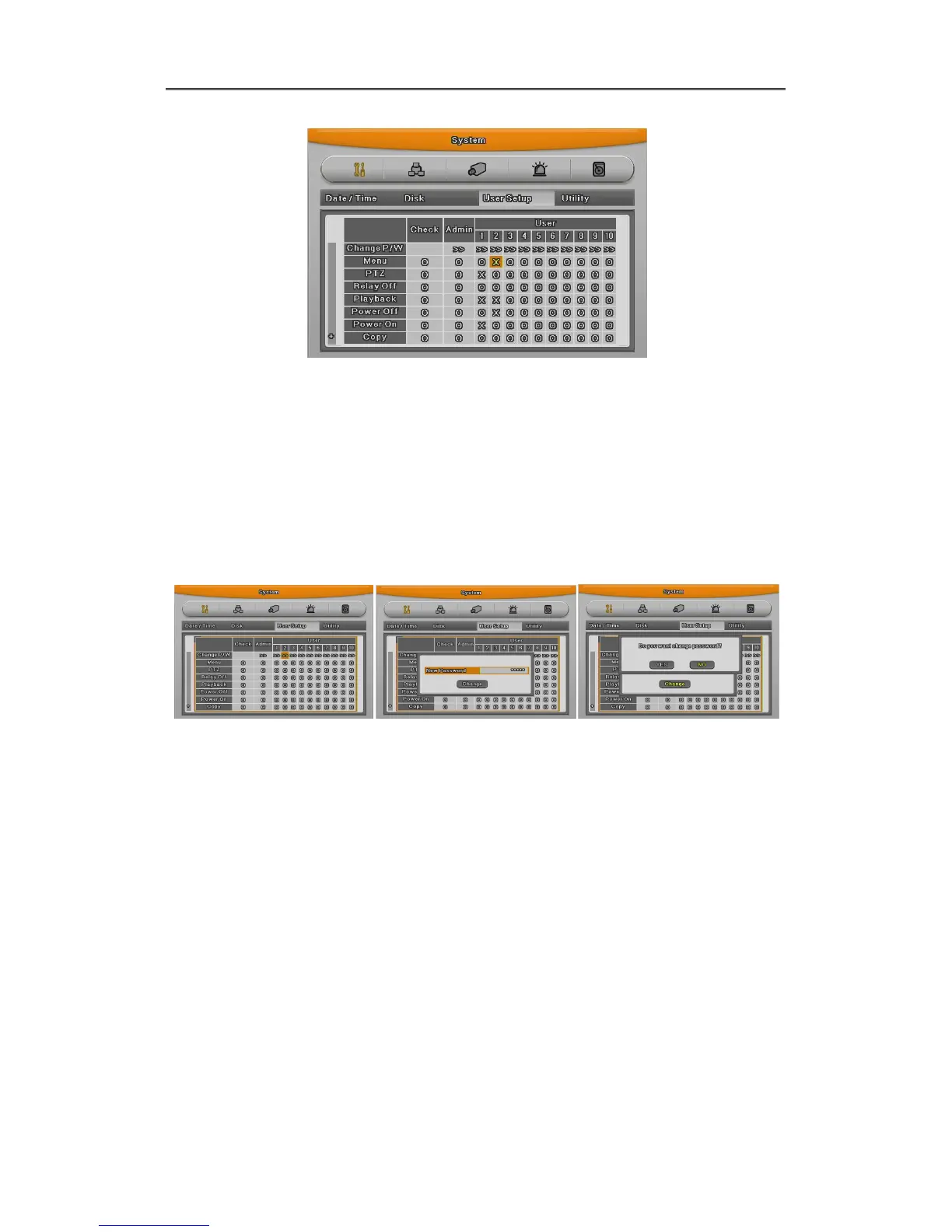 “11111”,”22222”,.. and user10 is “00000”. In case of 9 channel DVR user, press “0” for