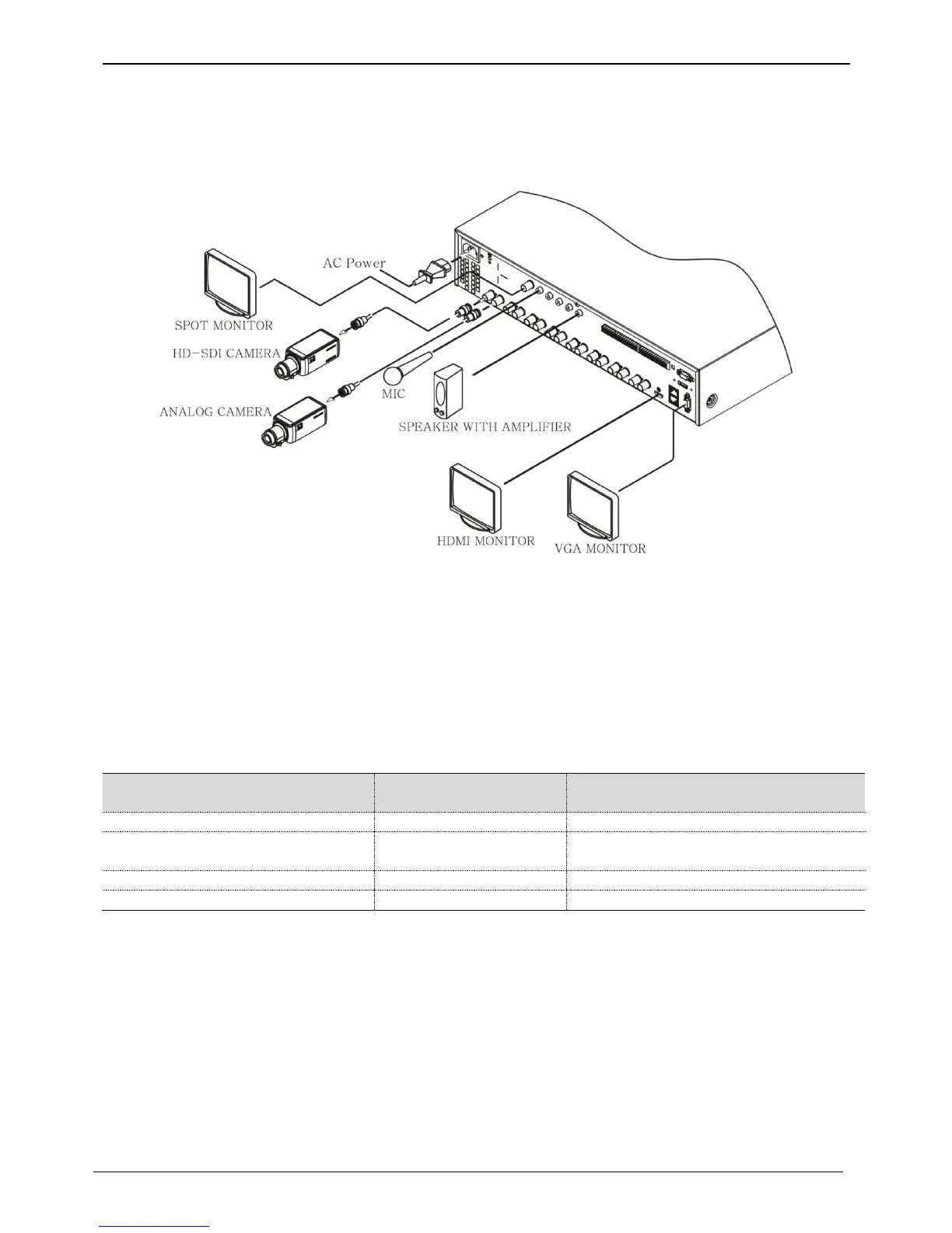 Connect 1080P, 720P, 960H, NTSC/PAL camera using recommended cable.