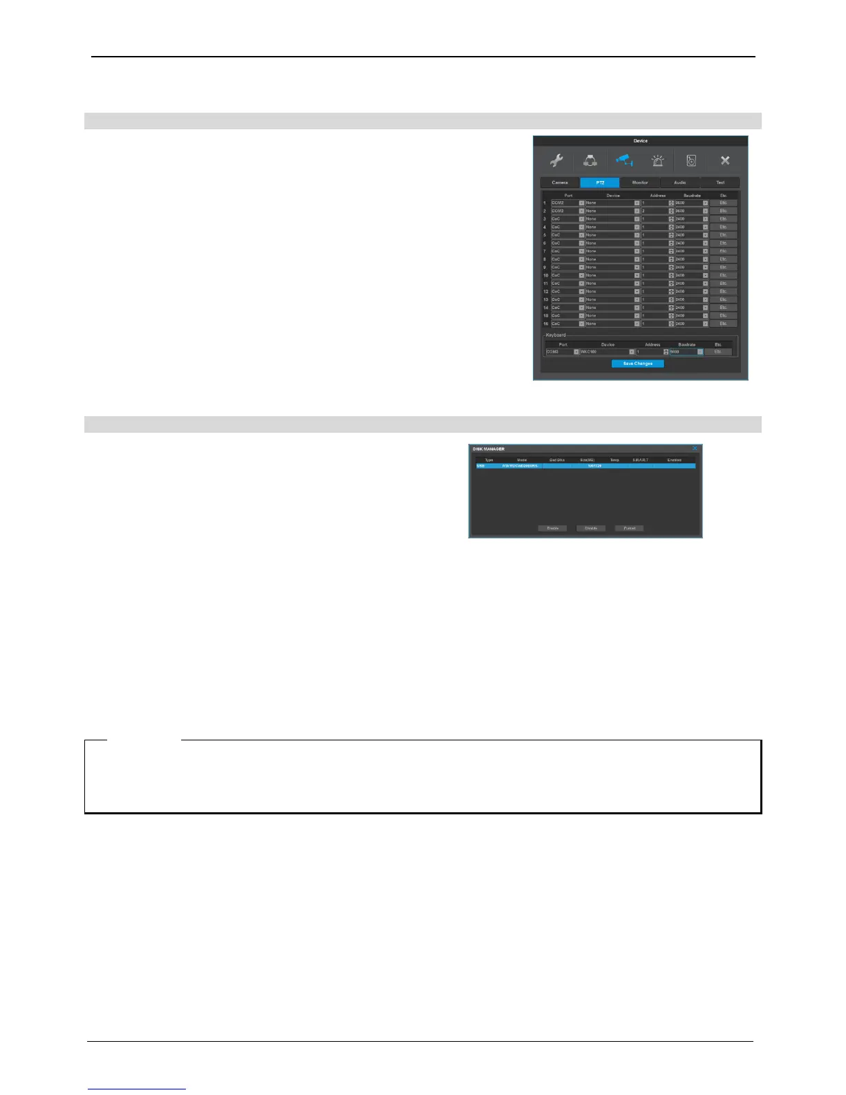 At PTZ menu, PTZ’s serial port per each channel, Protocol, PTZ address
