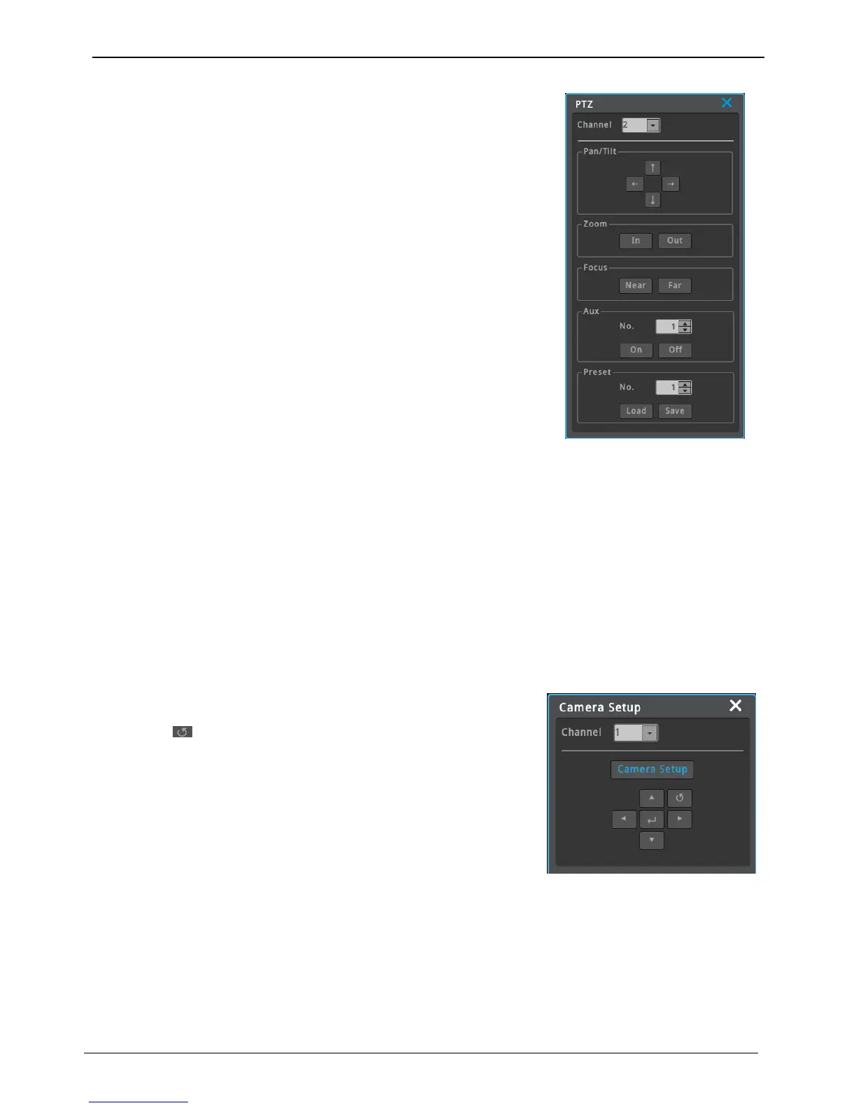 menu, users can use pan/tilt, zoom, focus, aux and preset functions.