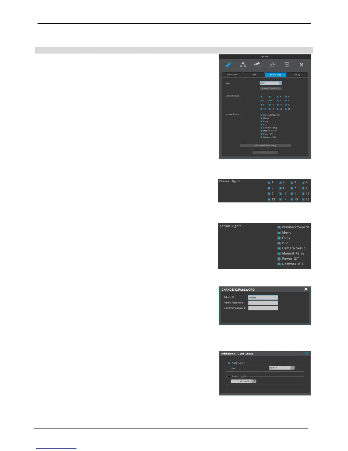 The action rights to each function(Playback/Search, Menu, Copy, PTZ,