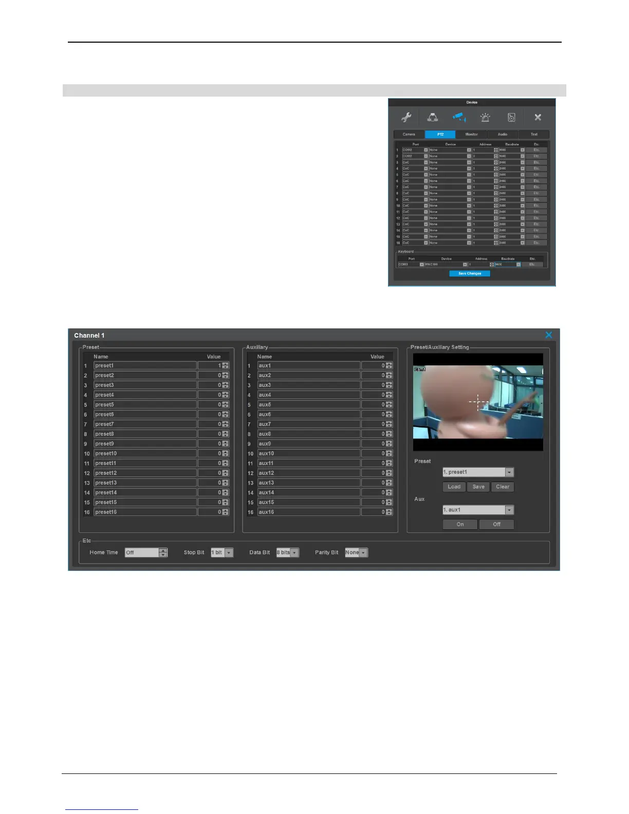 • Home time: In case there is not PTZ control for the selected interval, it moves to PTZ home that was