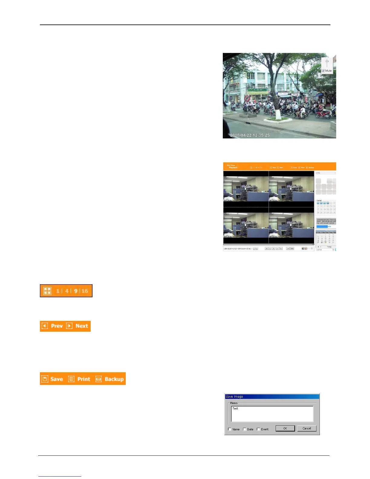 Playback supports 1, 4, 9,16 divisional screens. select division using menu on top of page as shown in the