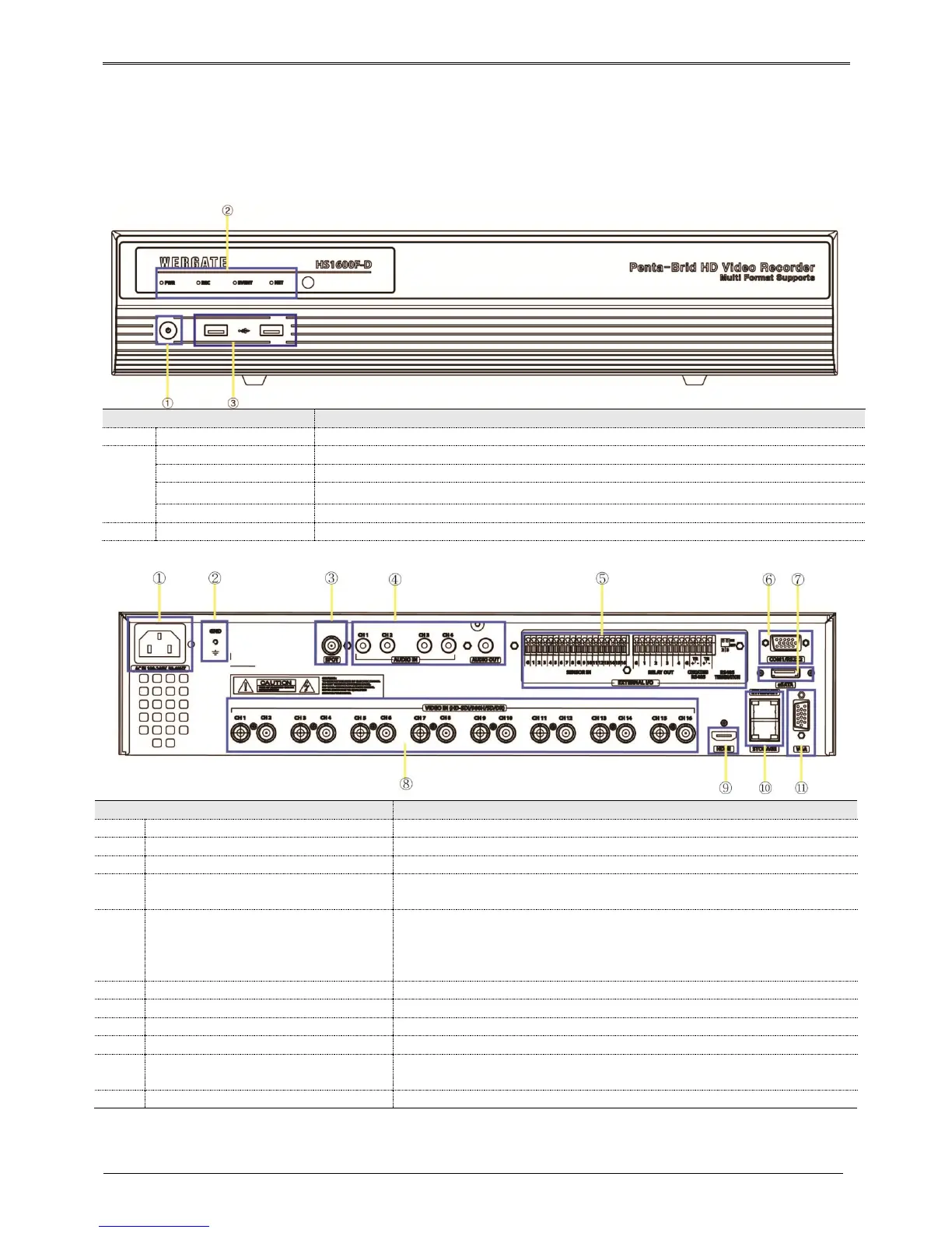 Camera input BNC port for 1080P, 720P, 960H, NTSC/PAL, DR cameras