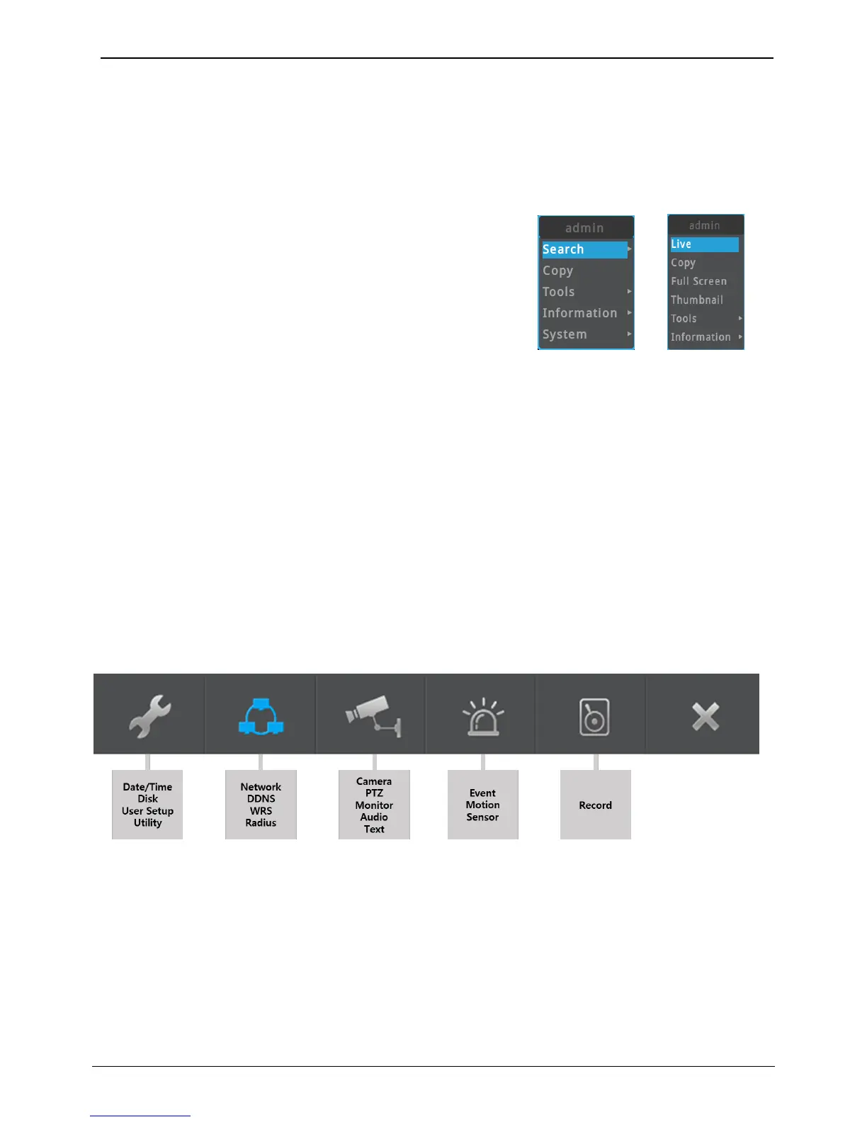 Tools - PTZ, Instant PTZ, Camera Setup, Multi, SEQ, Set