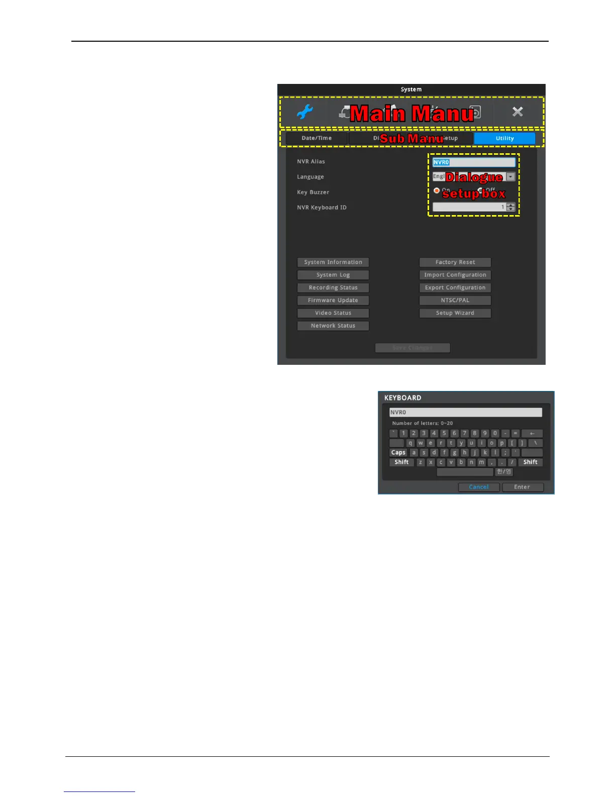 Press [MENU] key on front panel or click [Main