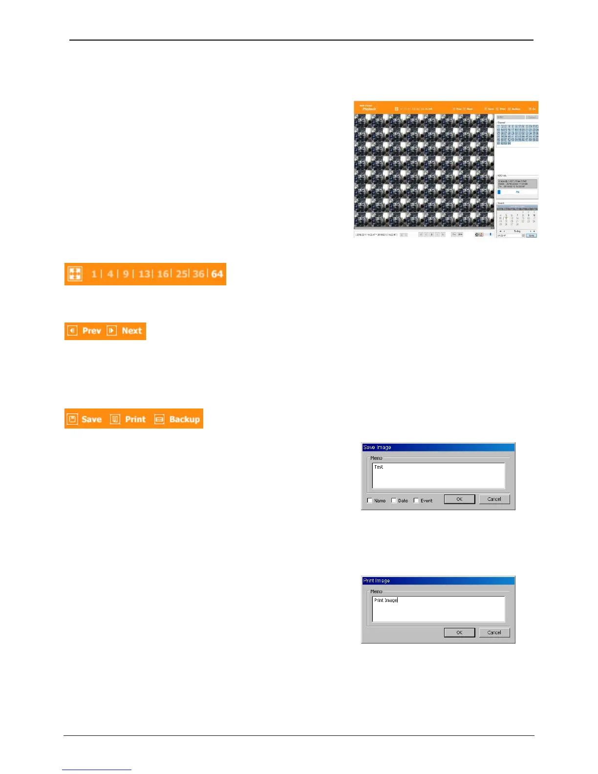 Playback supports 1, 4, 9, 13, 16, 25, 36, 64 divisional screens. Select division using menu on top of page as