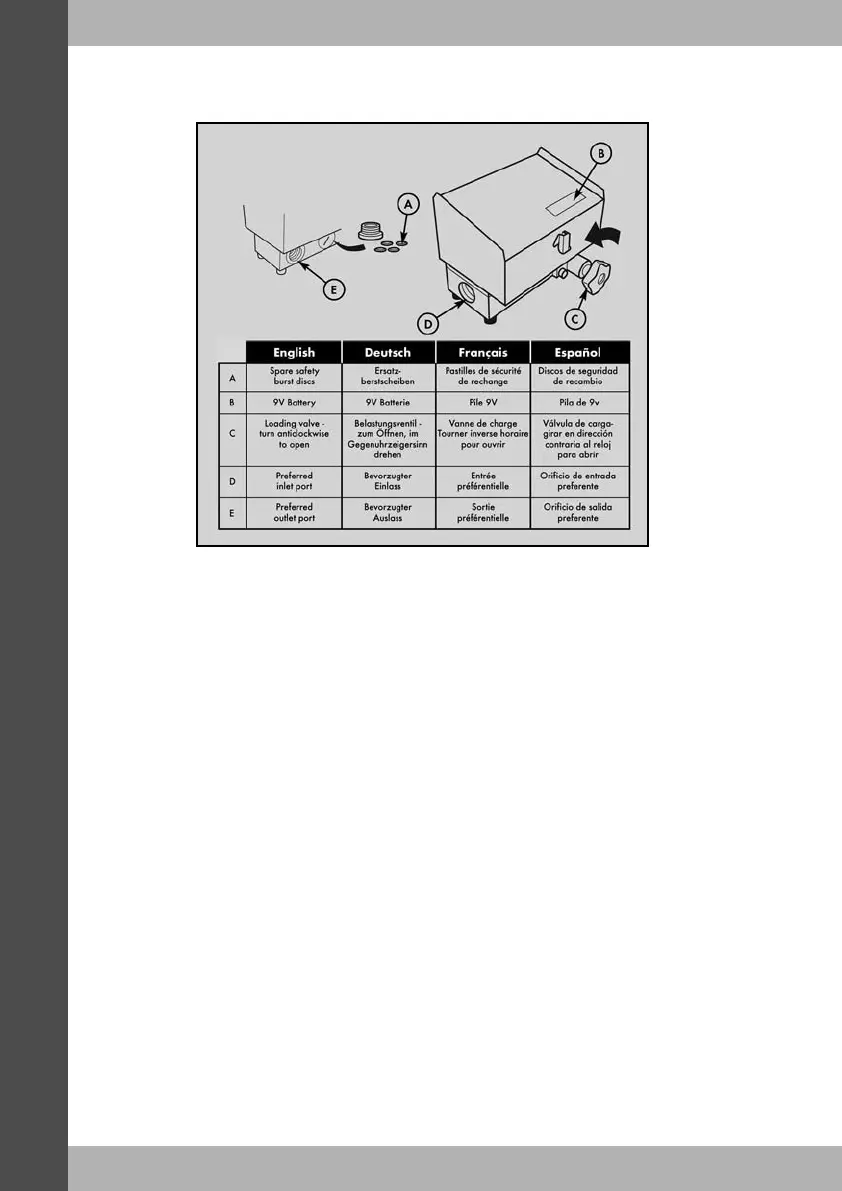 Four spare safety discs are supplied in a threaded storage holder on the rear of the flowmeter