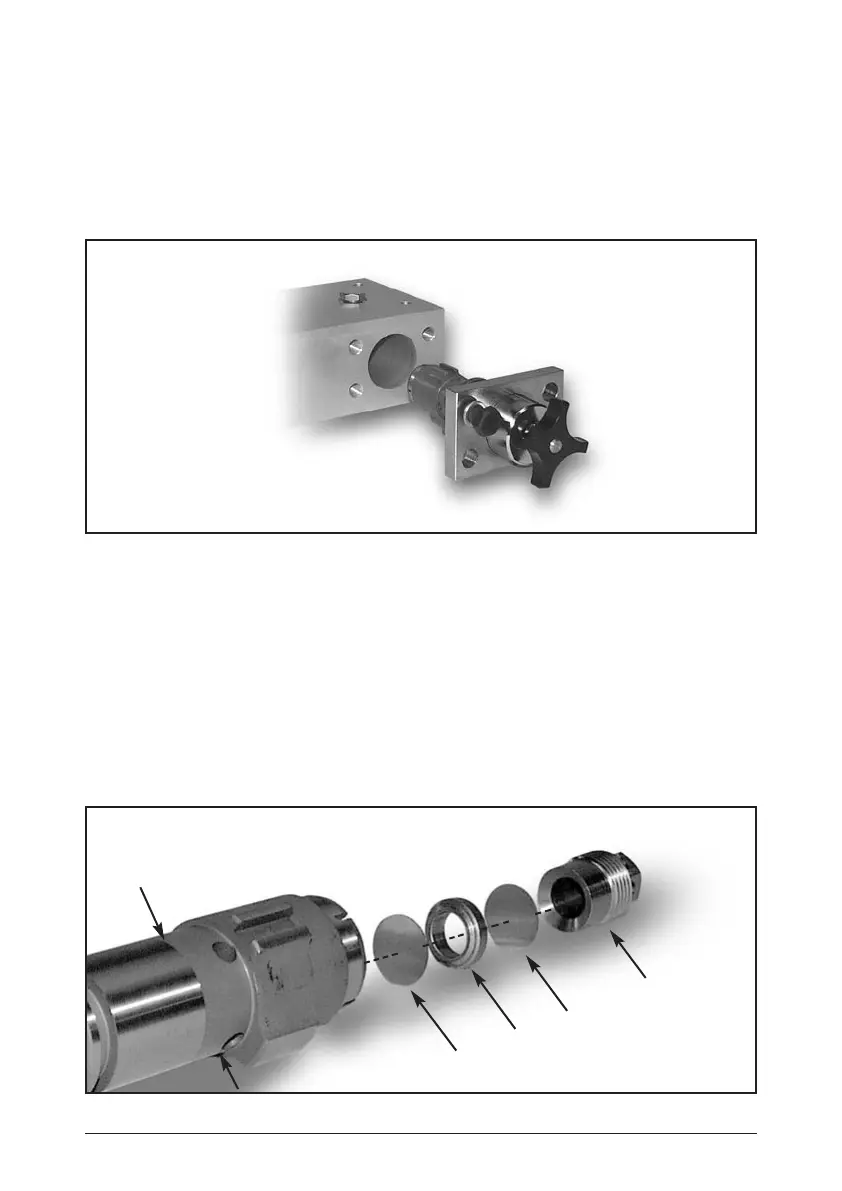 To replace the safety discs remove the loading valve assembly from the flow block. Unscrew